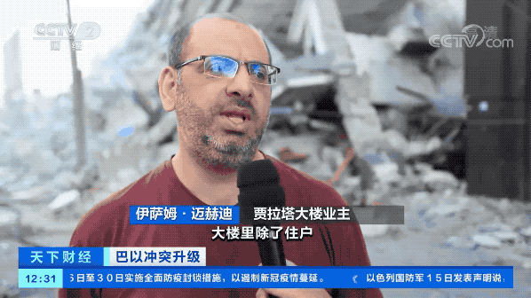 总台加沙特约报道员 阿纳斯·纳贾尔: 以色列军队在加沙的破坏清单中又加上了一栋新的大楼,鉴于当地恶劣到极点的经济状况,这意味着流离失所的人数也将增加。
