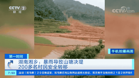 受持续强降雨影响,5月20日早上7点45分,湖南省湘乡市虞唐镇潭西村一座大山塘因山体滑坡导致决堤,约2万方水倾泄而下,所幸在决堤之前已经有所防范,决堤没有造成人员伤亡。