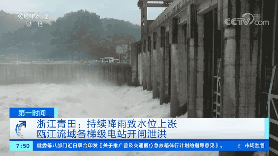 在青田三溪口水电站,22孔闸门已经全部开闸,滔滔江水顺着孔洞倾泻而出。电站工作人员告诉记者,近期上游水位快速上涨,已经逼近电站的汛限水位。