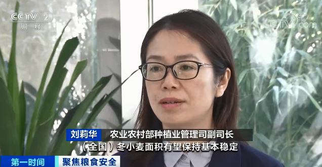 农业农村部种植业管理司副司长 刘莉华: 全国冬小麦面积有望保持基本稳定,关键是要抓好田管,确保小麦安全越冬,只要各项措施跟得上,夺取夏粮丰收是有基础的。