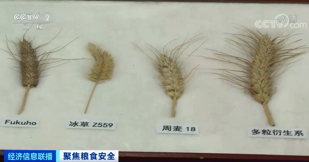 中国农科院作物作物科学研究所种质资源中心主任 李立会: 冰草是小麦的野生种,一个穗能结300粒以上,通常品种40粒左右,我们通过与小麦之间的杂交创造出了一个新的种质,育种家利用它就能培育出高产的品种,能够增产16%以上。