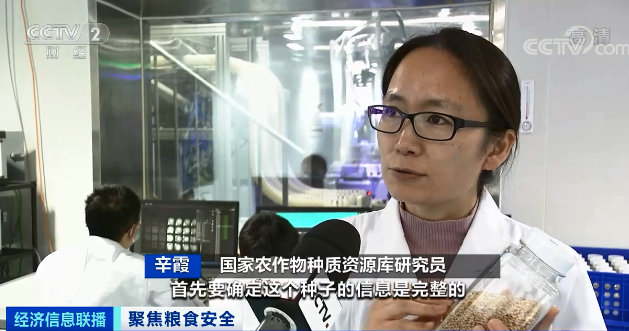 国家农作物种质资源库研究员 辛霞: 这是一份小麦种质资源,首先要确定种子的信息是完整的,判断一下有没有病害、虫害,然后进入发芽率检测,小麦种子控制发芽率是90%以上才能够入库保存。