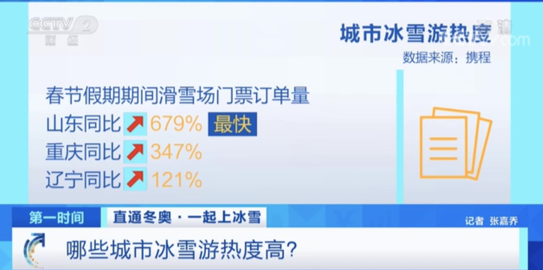 冬奥来了,全国各地掀起冰雪旅游热潮,春节假期期间滑雪场门票增长最快的是山东,订单量同比增长679%。 其次为重庆和辽宁,订单量分别增长347%和121%。