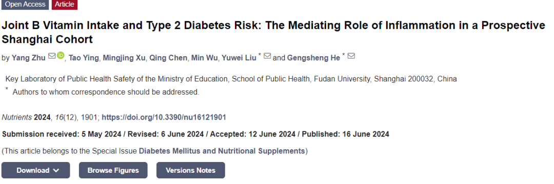 营养学领域著名期刊《Nutrients》上发表的一项新研究显示:适量补充B族维生素,与降低2型糖尿病风险有关,其中B6作用最强,这种关联可能部分由炎症介导。