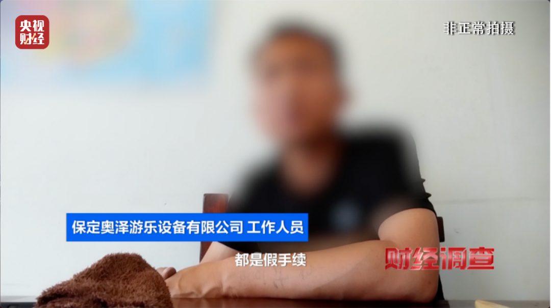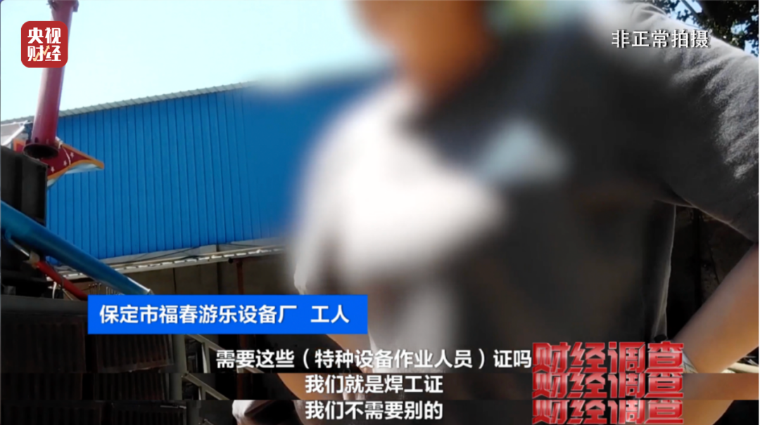 但国家市场监督管理总局调查组和《财经调查》的记者发现,这些飞椅和海盗船上并没有相应的登记标志,经营者甚至坦言在这样的集市、庙会上经营并不需要相关手续,甚至连营业执照都没有。
