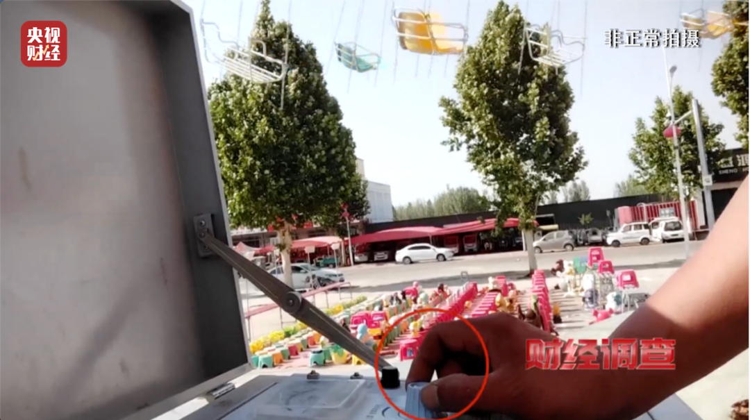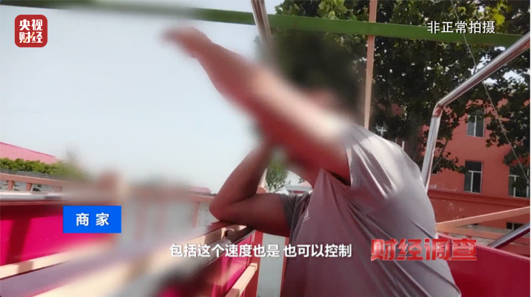 调查组在市场里了解到,集市和庙会上经营的旋转飞椅在出厂时,厂家都出具了最大运行高度和速度不超过2米和2米每秒的合格证。但在实际经营中,高度和旋转速度都可调整,为了招揽顾客多挣钱,商家都会私自调快设备的速度,导致危险系数成倍增加。