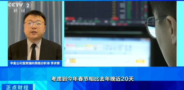 中金公司首席国内策略分析师 李求索:考虑到今年春节相较去年晚近20天,今年节前上市公司分红相对更加积极,从行业层面看,银行股分红约占70%。