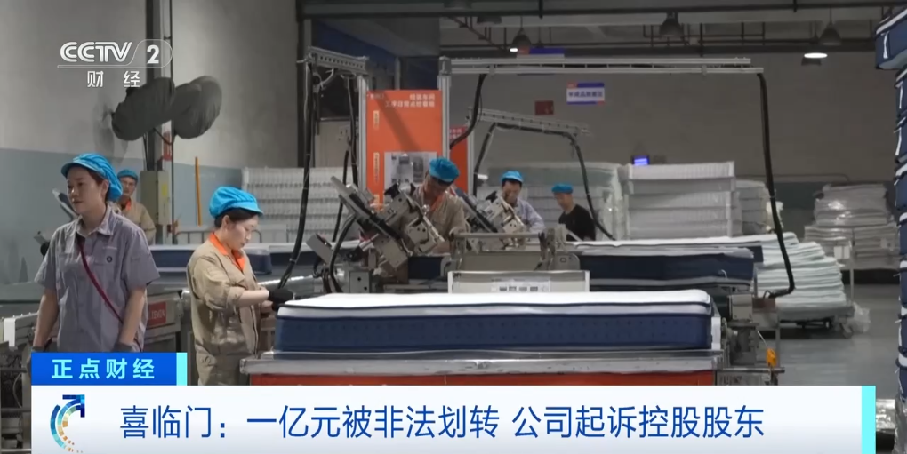 总台央视记者 刘怡乐:最近一周,喜临门接连曝出重大经营风险。公司更是直接将控股股东告上法庭,一场“子告父”风波正在行业内上演。目前公司的经营仍然正常,产线也在正常运转,厂区内也一直有货车进出。