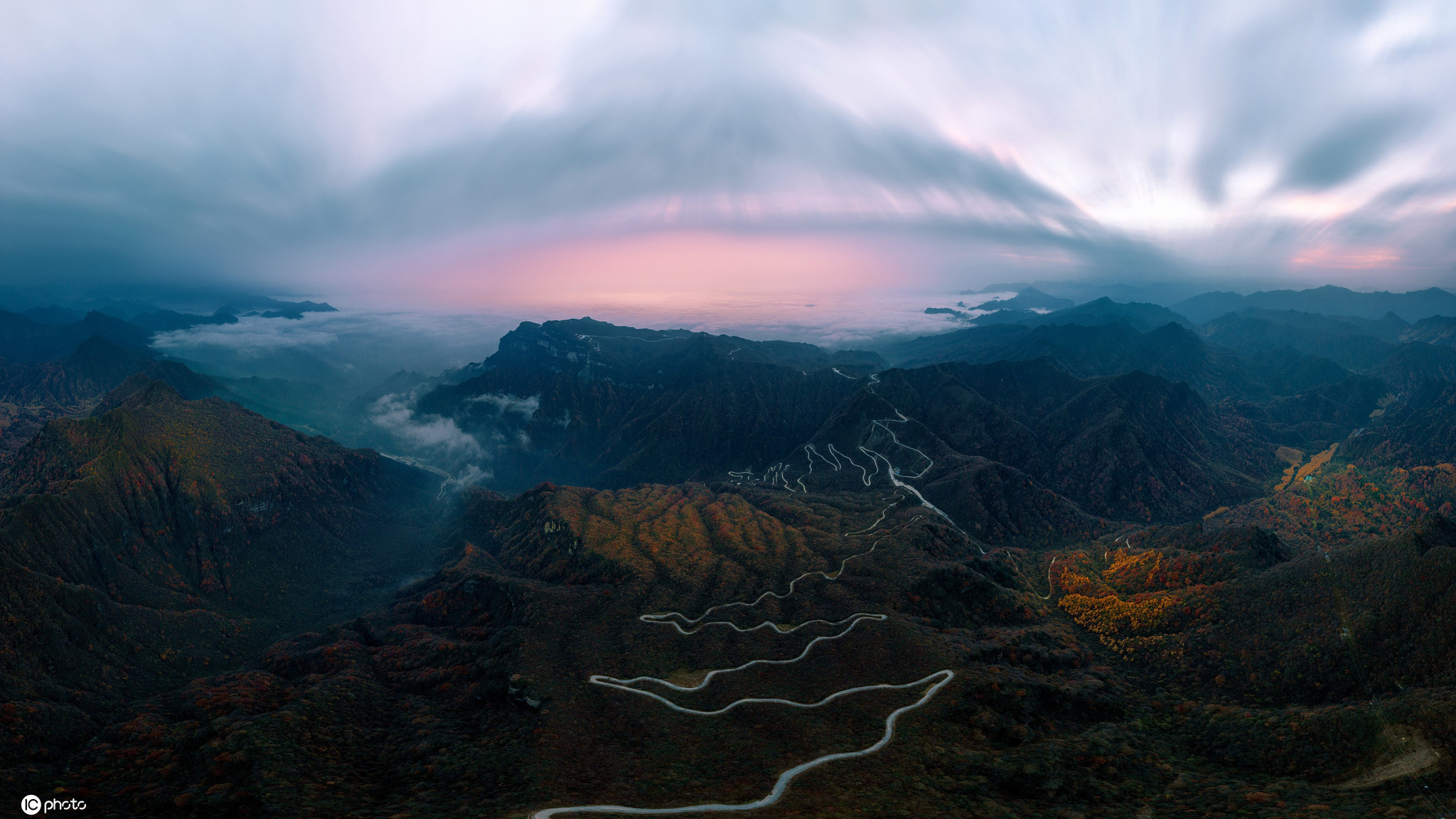 光雾山位于四川省巴中市南江县北部,是一方神奇秀丽的自然山水,地形复杂,峰峦迭嶂,峰林俊美,洞穴幽深,山泉密布,云蒸雾绕,林海浩荡,胜景众多,有中国红叶第一山的美誉。图为2020年11月12日,光雾山漫山红遍、层林尽染。(图片来源:东方IC)