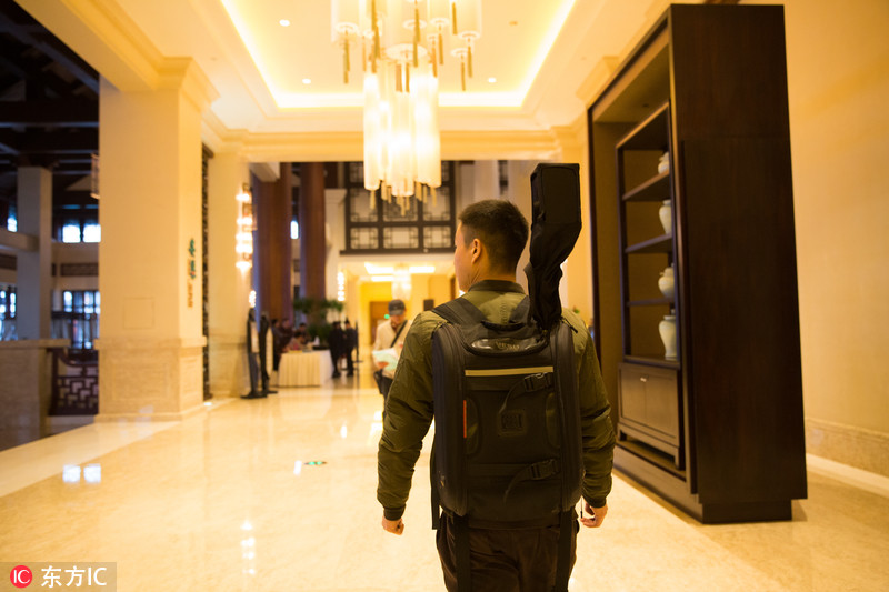 商场实景地图采集员,是一群年龄在20-35岁之间的男青年。但他们却干的是完全女性化的活:狂珠宝店、刷饭馆、甚至女性内衣店都要采集,整个商场,除了卫生间,所有的地方,都是他们工作的场所。他们每天背着价值20万,重达15斤的神器,在各个商场之间奔波。图摄于2017年11月22日。