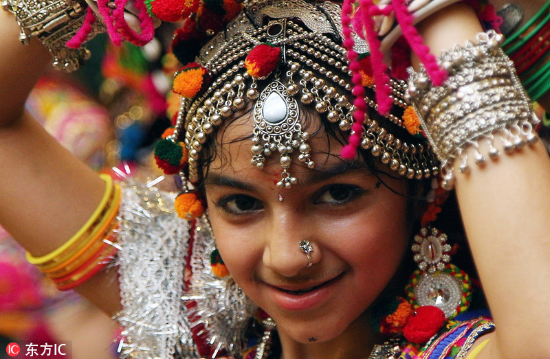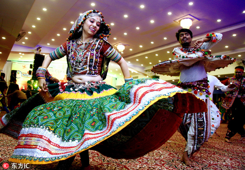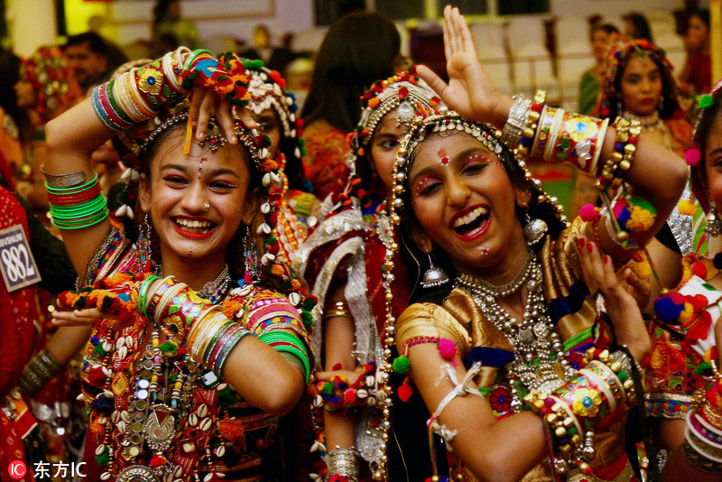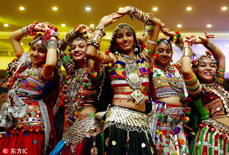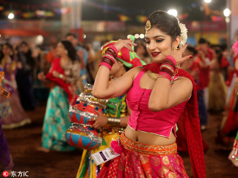 印度各地庆祝“九夜节” 美女盛装跳传统舞美轮美奂