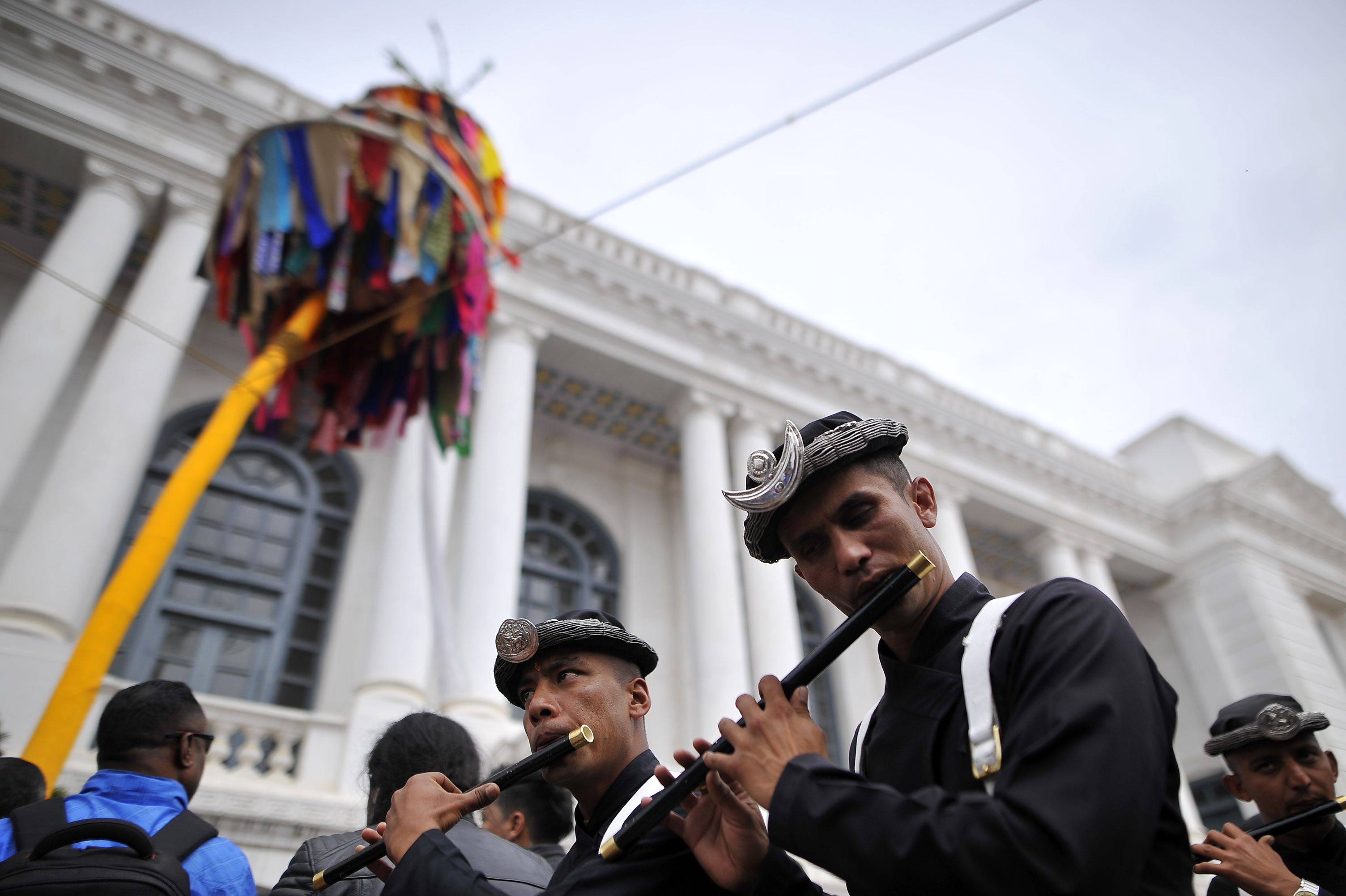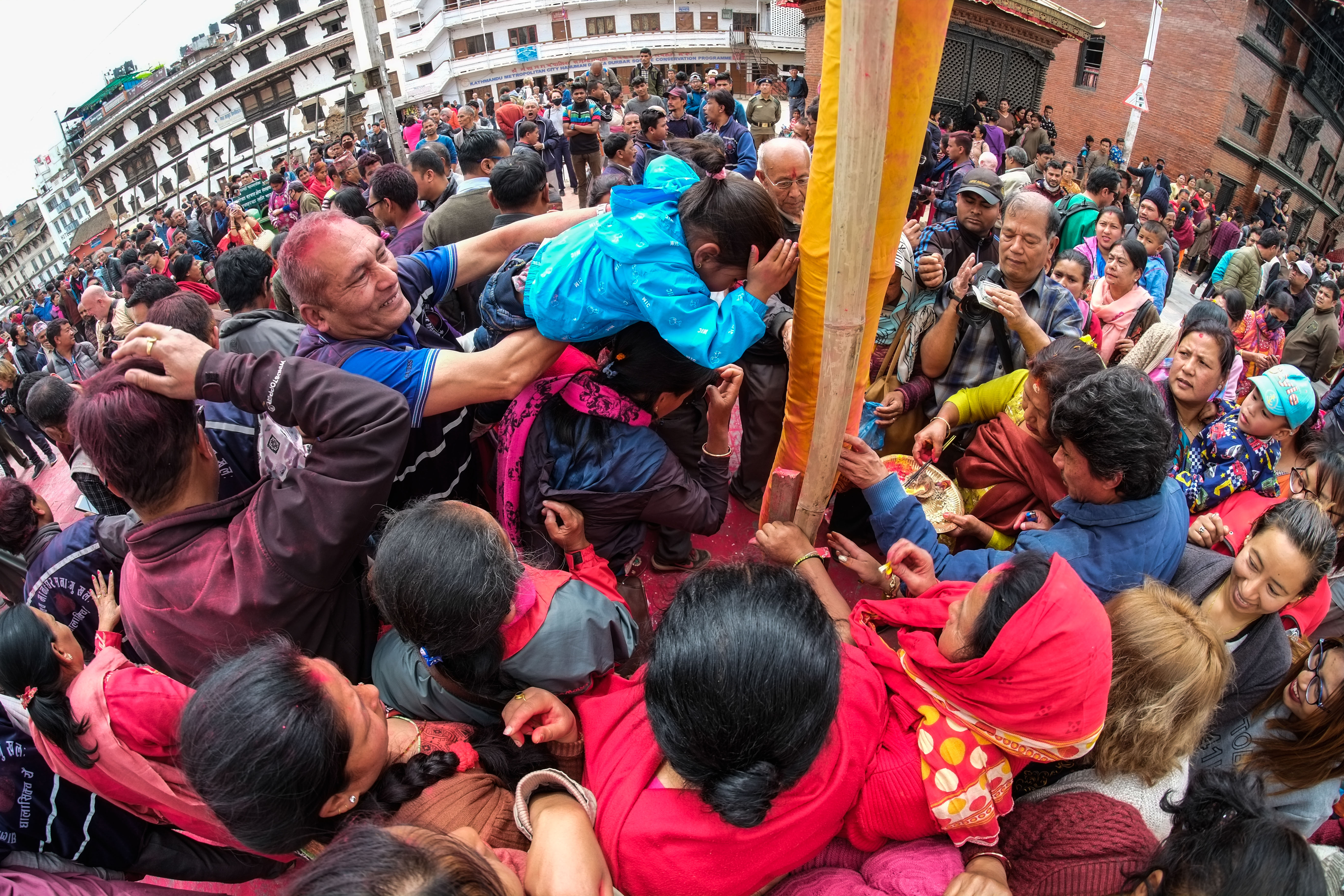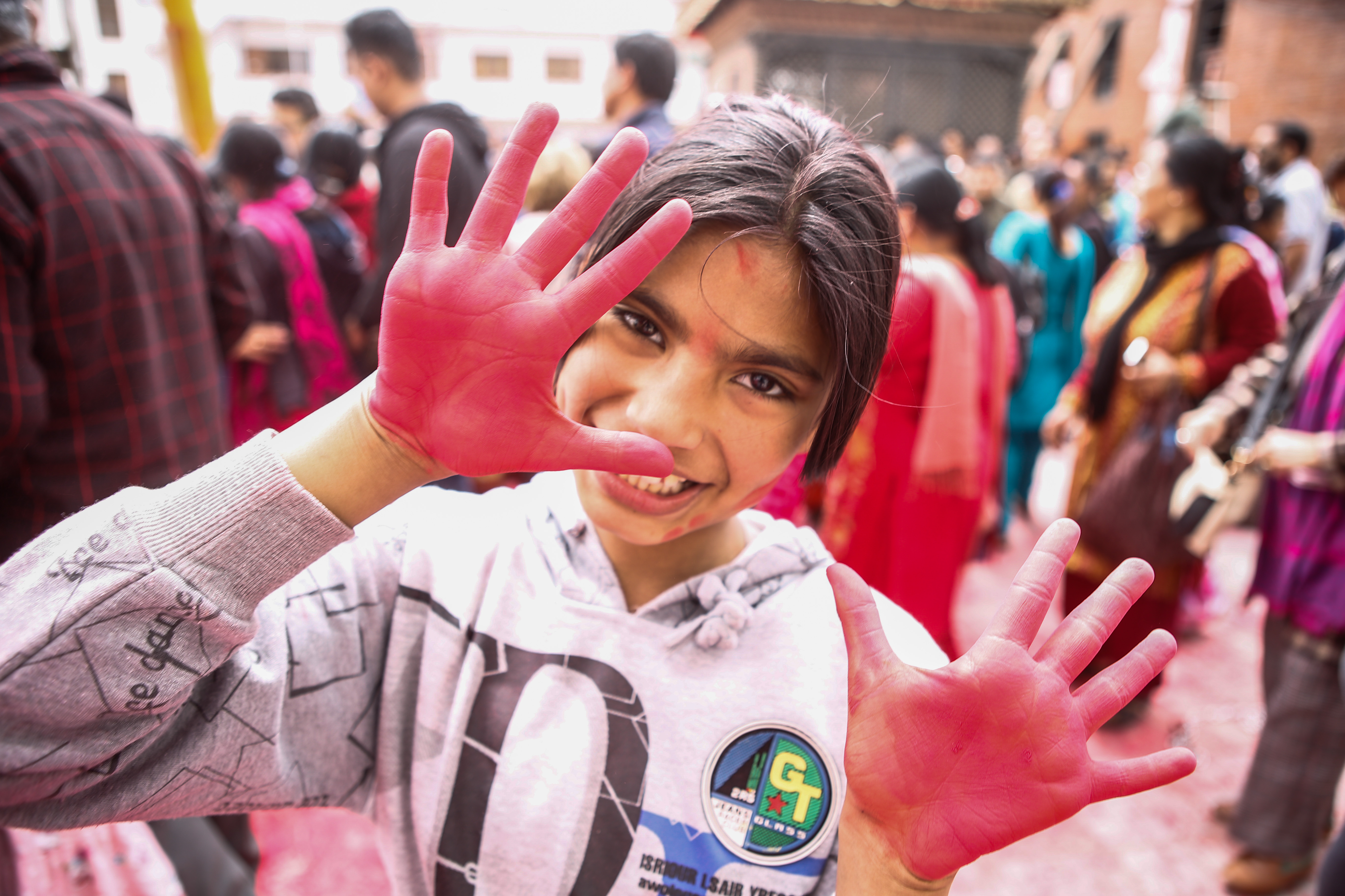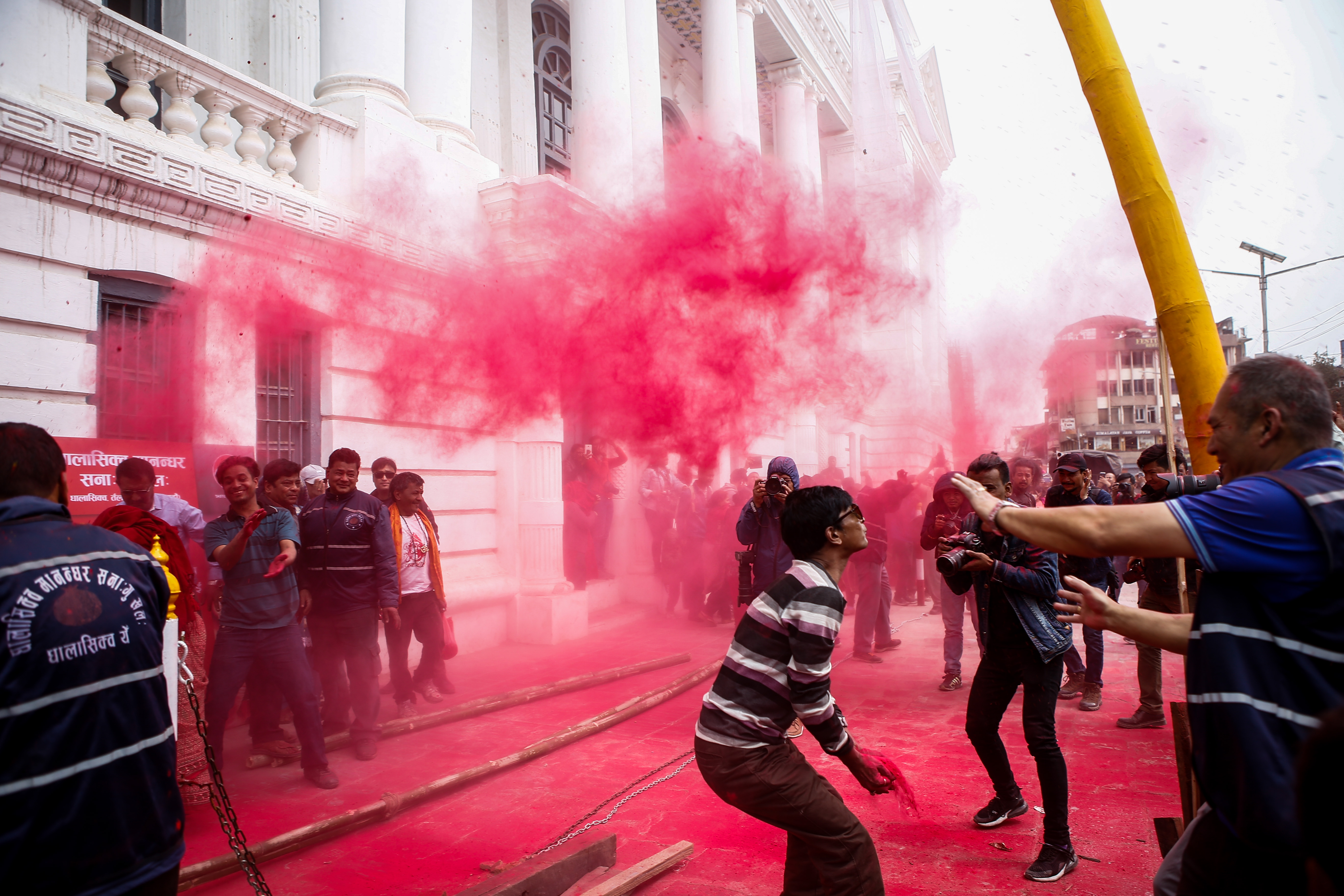尼泊尔举办洒红节庆典 红烟漫天迎接春天