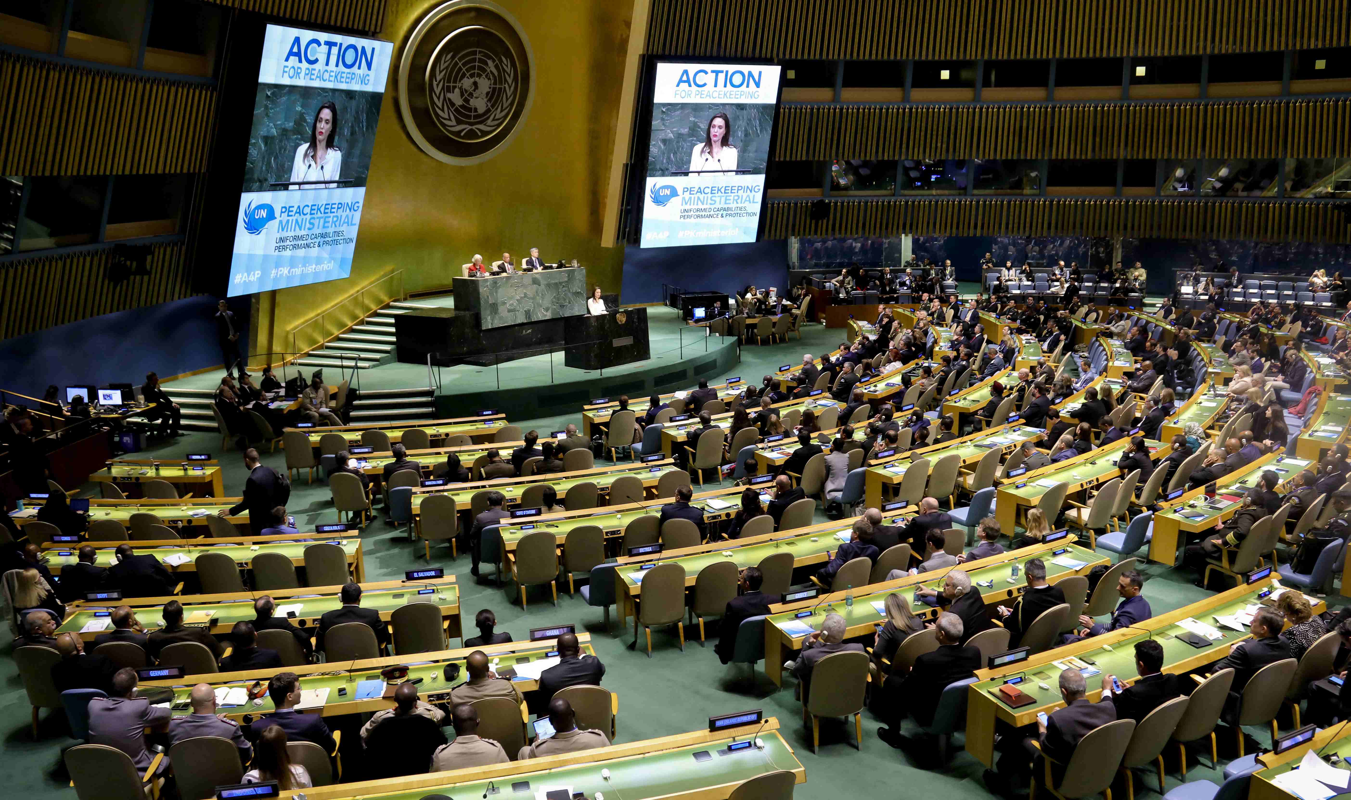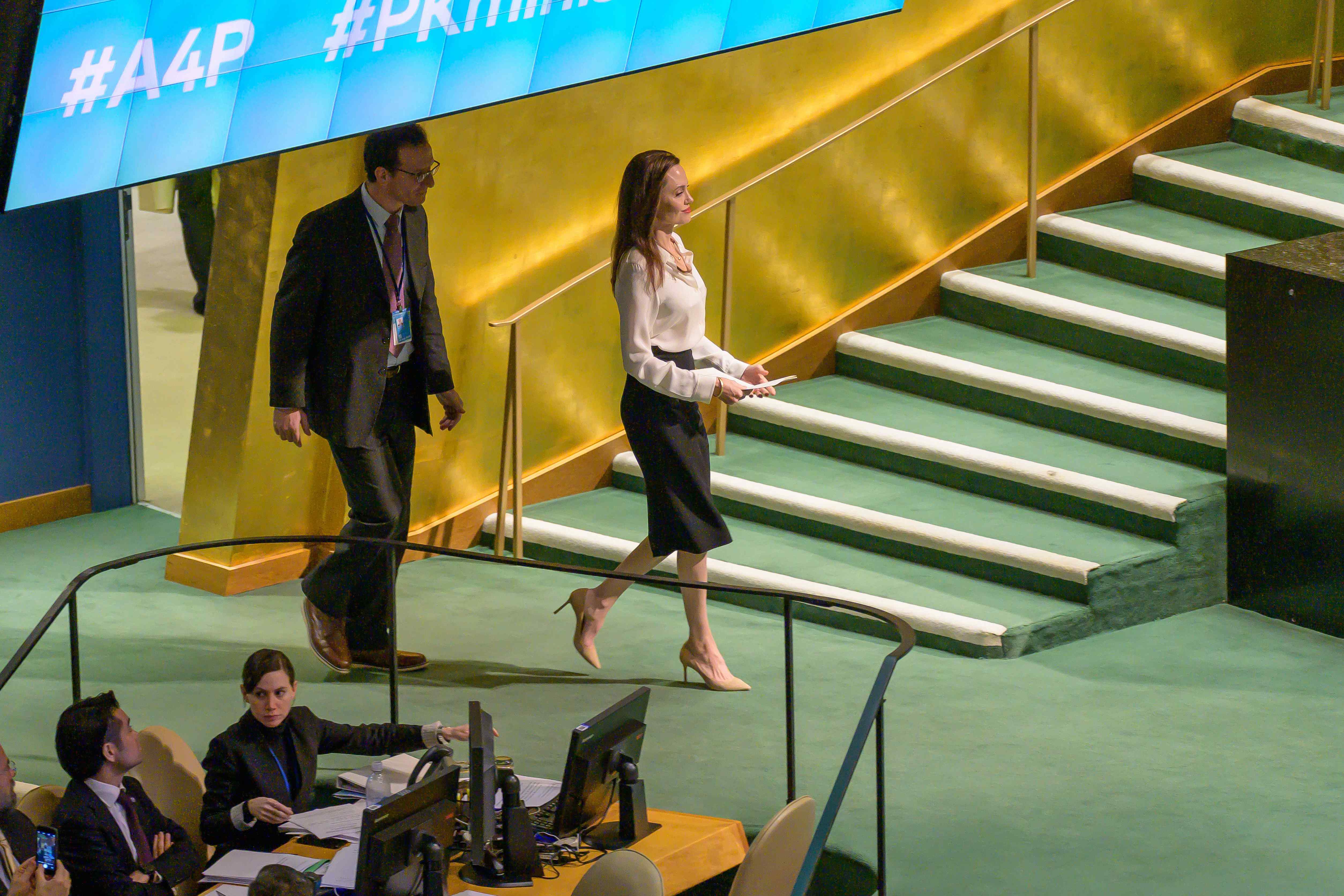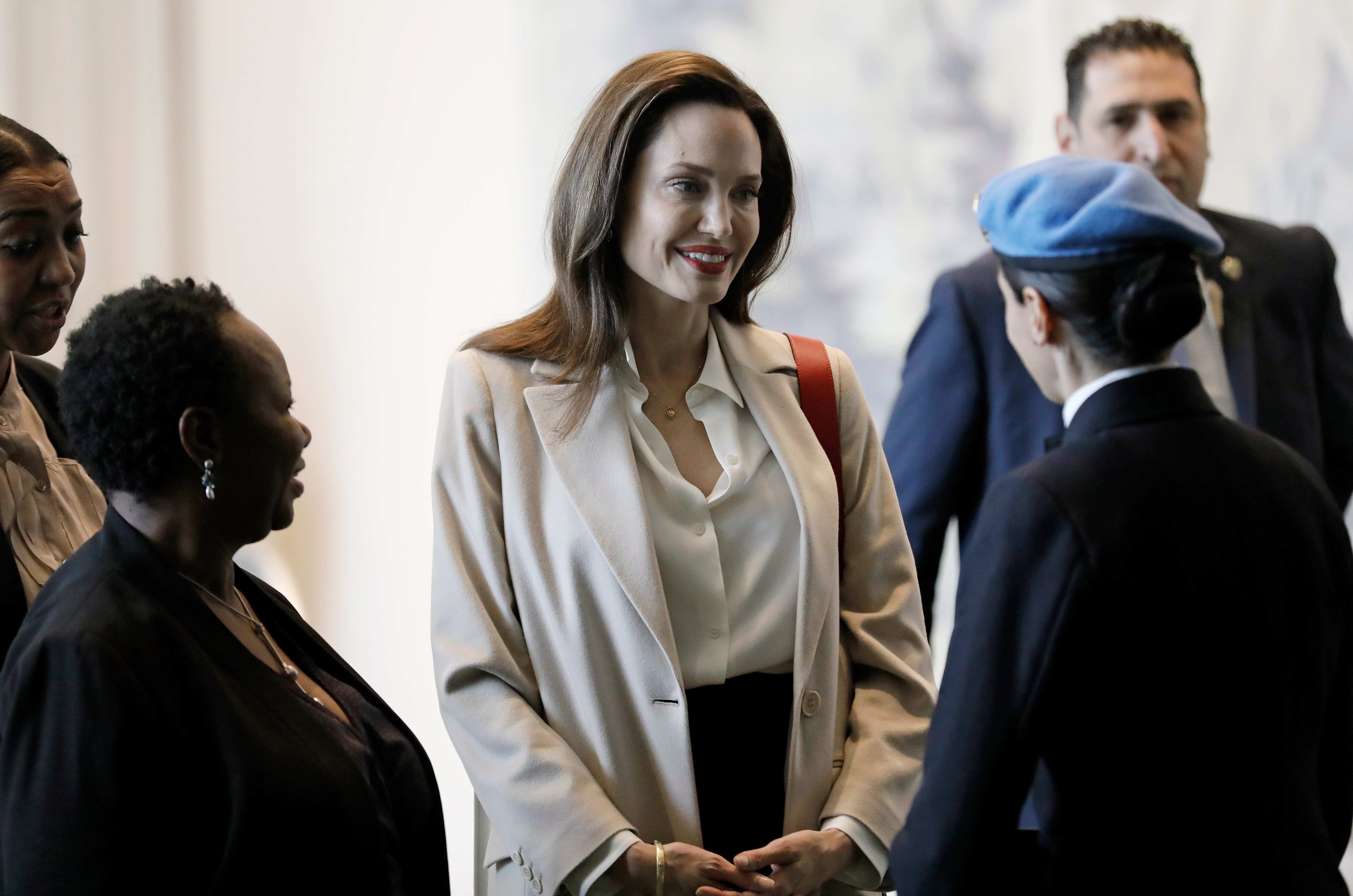 当地时间2019年3月29日,美国纽约,好莱坞女星安吉丽娜•朱莉以联合国难民署特使身份出席在纽约联合国总部举行的维和部长级会议。