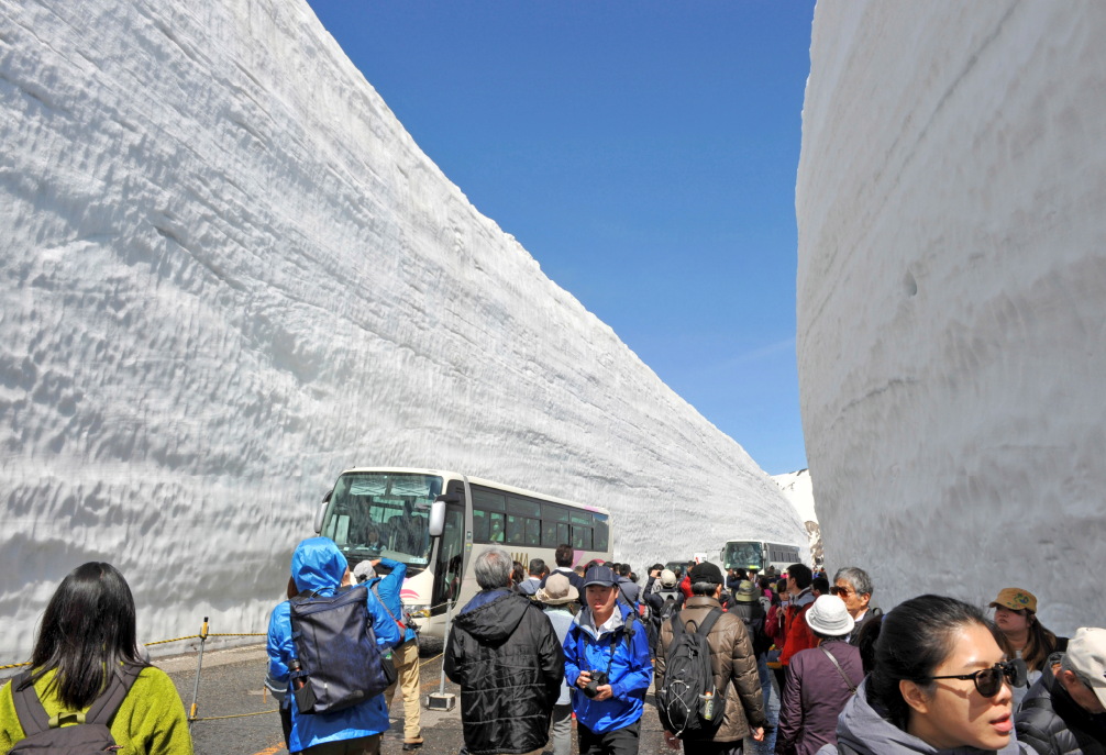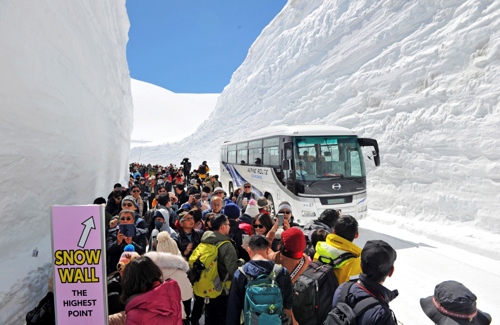 日本“雪墙公路”对公众开放 两侧积雪高达16米