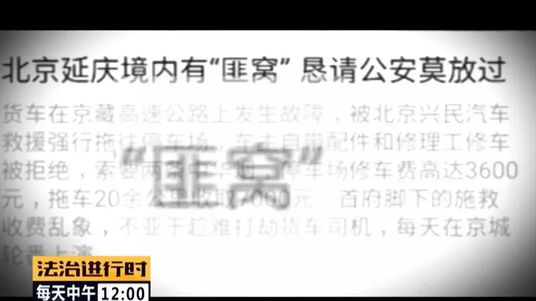 警灯、警报,警服,看对方如此阵势,赵先生很害怕,也没敢阻拦,他的货车被这伙人拖进了一个名叫延庆兴民汽车救援的公司。