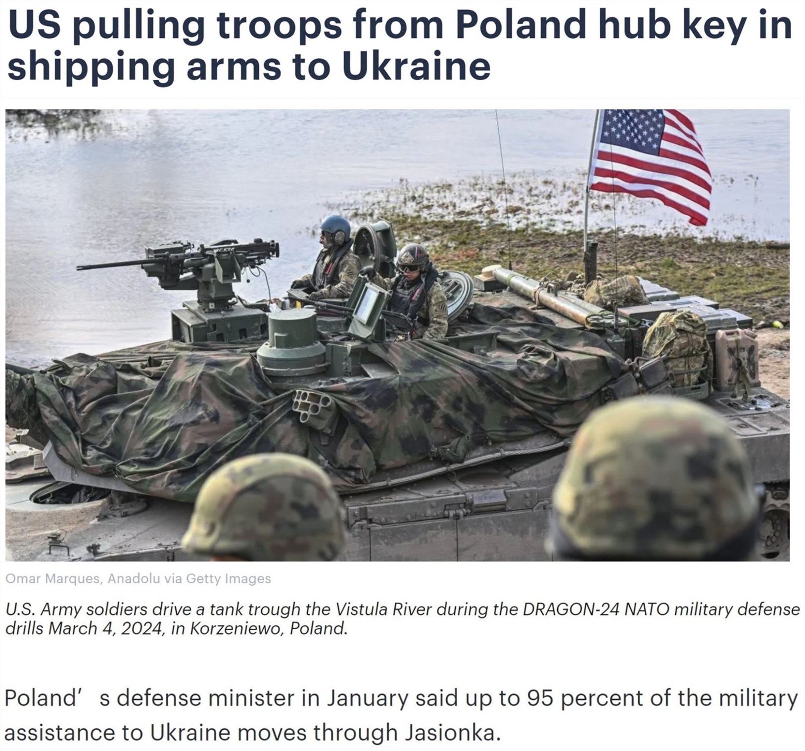 中央广播电视总台环球资讯广播《环球军事报道》主编魏东旭分析指出,美军之所以将对乌军援物流枢纽撤离至波兰其他地区,很可能是想减少对乌援助。