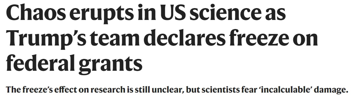 自今年1月上台以来,本届美国政府以审查前任政府项目、“避免浪费”并重新调整科研支出以“适应美国的优先事项”等为由,将矛头指向从气候到生物医学在内的多个学科,大幅削减科研经费,致使多个科研项目被迫暂停甚至终止。