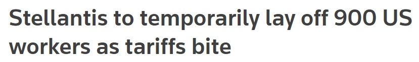 美国汽车行业巨头斯特兰蒂斯集团表示,由于关税政策对汽车行业产生严重影响,该公司决定裁撤其五家美国工厂的900名员工,并暂停加拿大和墨西哥的两家装配厂的生产业务。