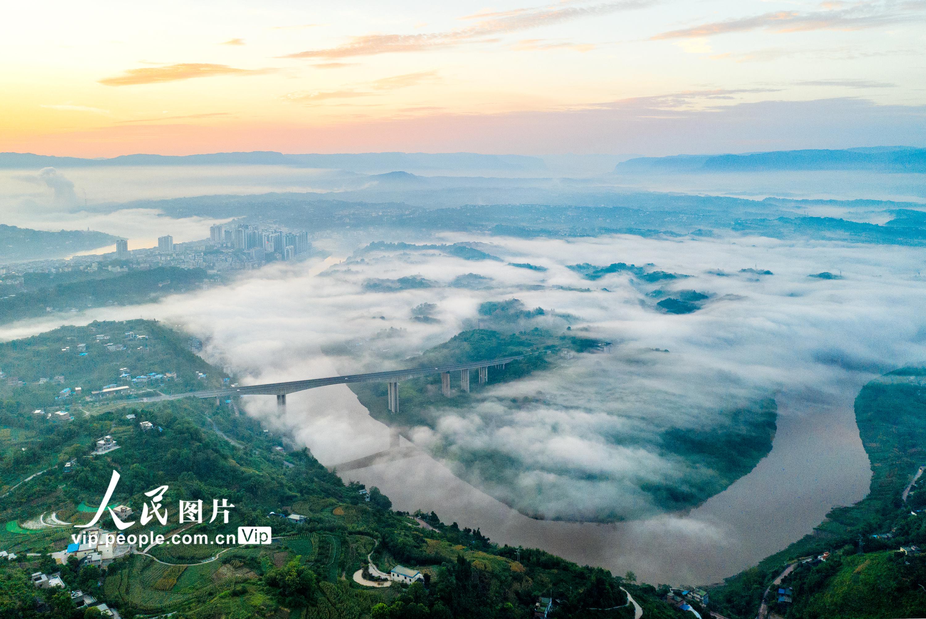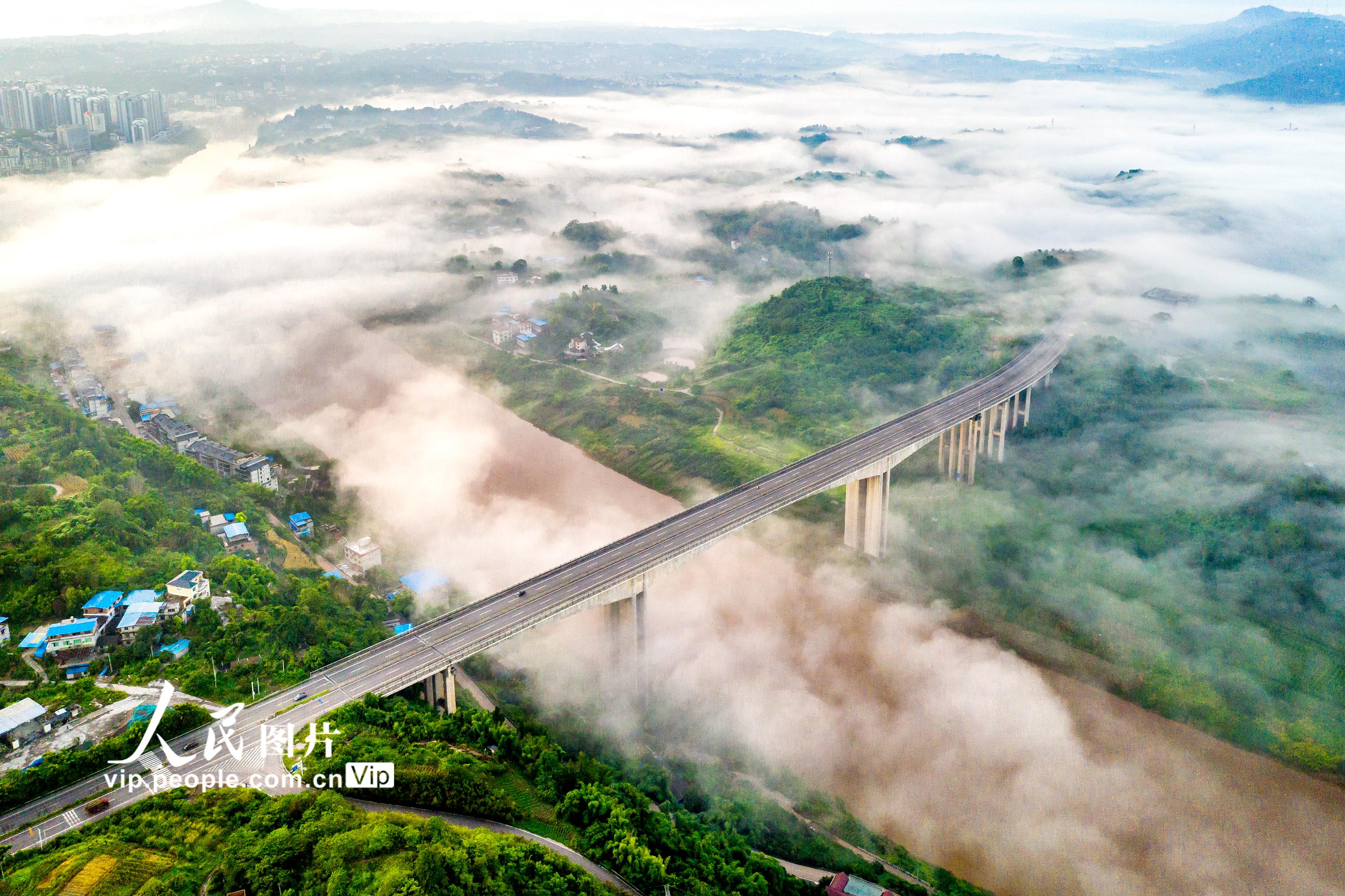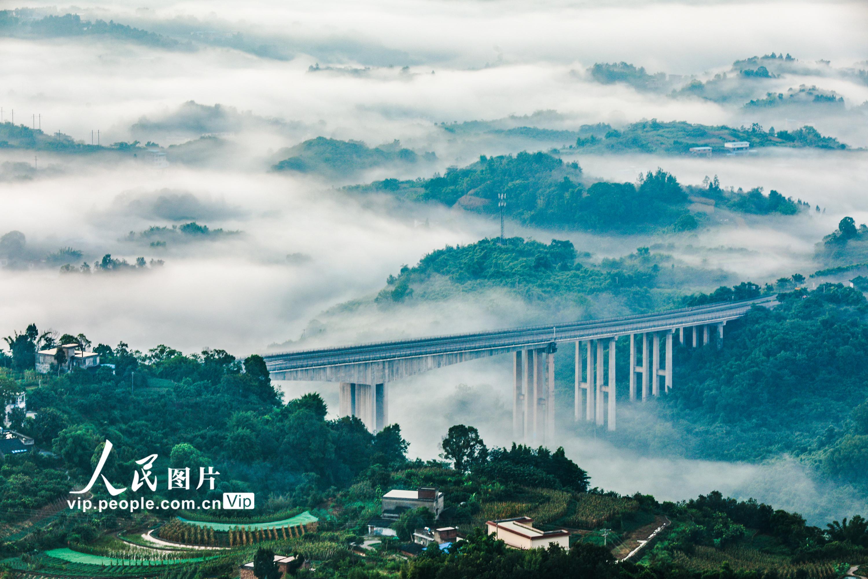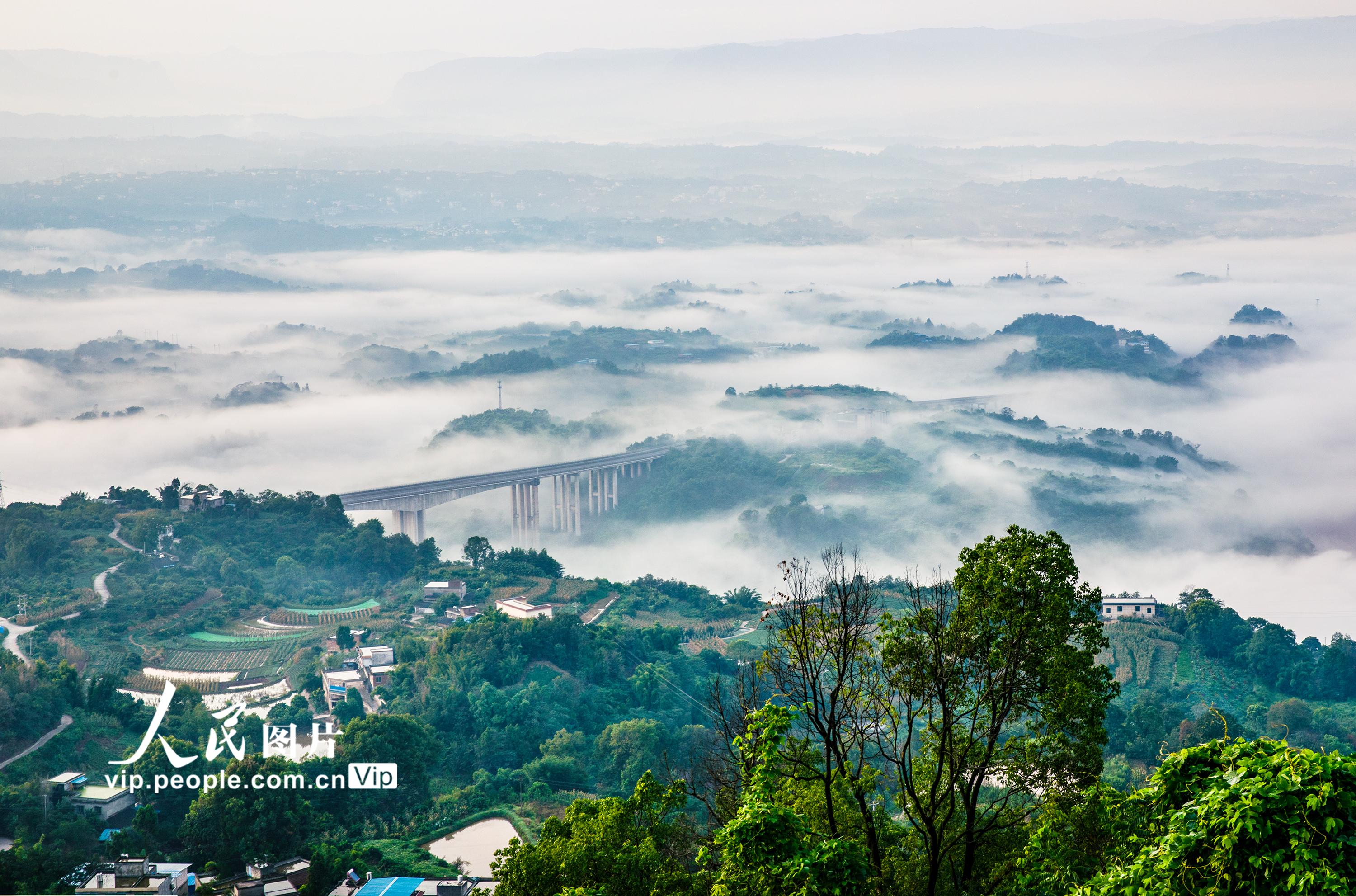 近年来,四川省泸州市合江县努力践行“绿水青山就是金山银山”理念,大力实施河流生态治理、农村生活垃圾和污水治理、农村人居环境整治等,着力打造生态绿色宜居和美乡村,群众的幸福感和获得感不断提高。图为7月22日,四川省泸州市合江县三江荔枝生态园区,晨雾在青山绿水间萦绕,农舍与桥梁相互晖映,构成了一幅夏日和美乡村画卷。 李贵平摄(人民图片网)