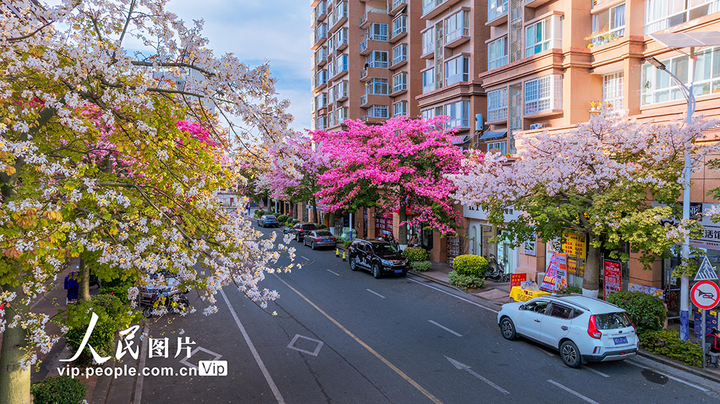 近日,四川攀枝花迎来了独有的“花开”时节,街头巷尾被粉色的异木棉点缀得如诗如画,美不胜收。周静摄(人民图片网)