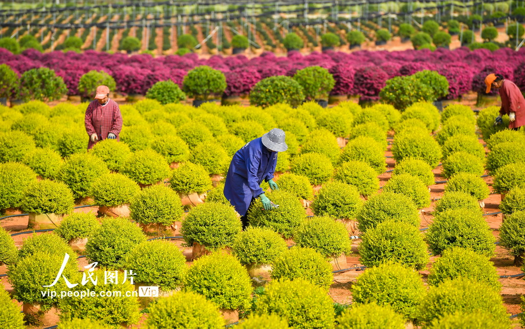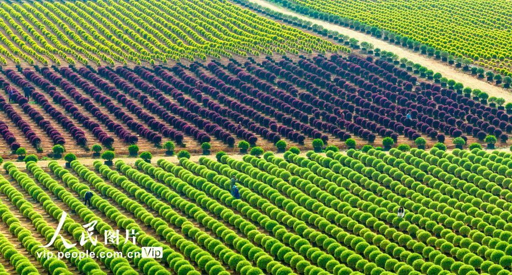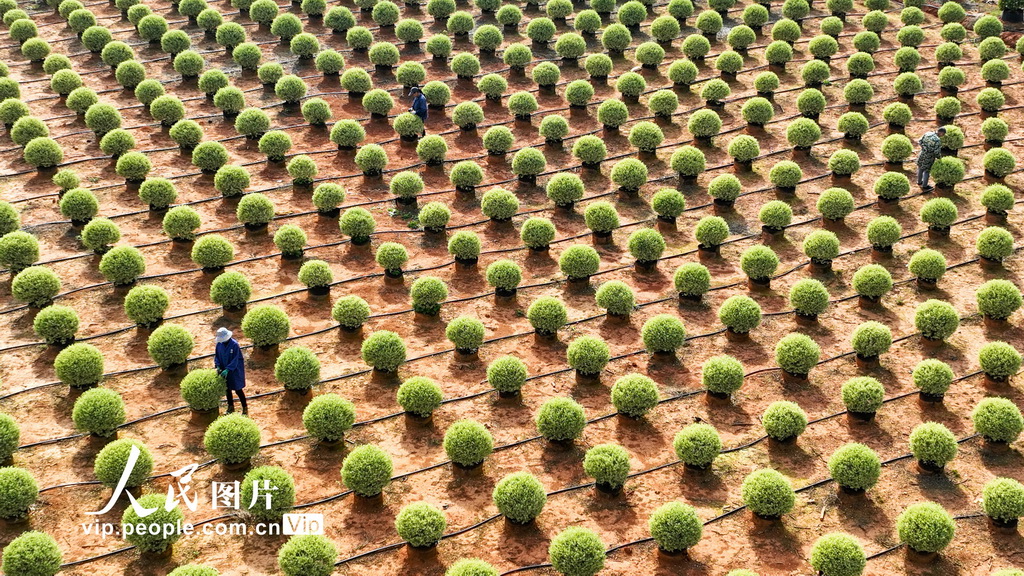 近年来,江西省樟树市积极探索乡村振兴产业发展新模式,以花卉苗木和中药材产业为抓手,打造了一批花卉苗木及中药材产业基地,不断将生态优势转化为经济优势,并通过农文旅融合,助推花木“颜值”催生经济“产值”,实现了乡村美、百姓富、生态好的新局面,不仅带动村集体经济和农民增收,也为乡村振兴增添“绿色动能”。4月1日,江西省樟树市临江镇武塘村林欣苗木基地,种植户正在管护苗木。周亮摄(人民图片网)