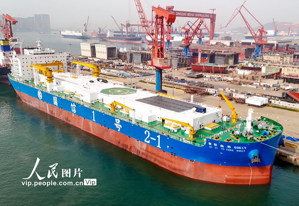 2025年4月17日,由青岛国信集团投资建造的全球首艘15万吨级智慧渔业大型养殖工船“鲁即渔养60617”在中国船舶集团北海造船有限公司交付并投入运营。 该船船长244.9米,养殖水体近10万立方米,集成了160余项创新技术,实现了全流程约90%的机械化作业,每年可产出大黄鱼等优质鱼类3600吨。其独创的“船载舱养 + 智能决策”模式,能够精准调控养殖环境,使自动化水平提升了45%,人力成本降低了20%。 作为“国信1号”的升级版,该船的交付标志着我国深远海养殖正式进入标准化量产阶段,为构建“蓝色粮仓”提供了工业化解决方案。张进刚摄(人民图片网)