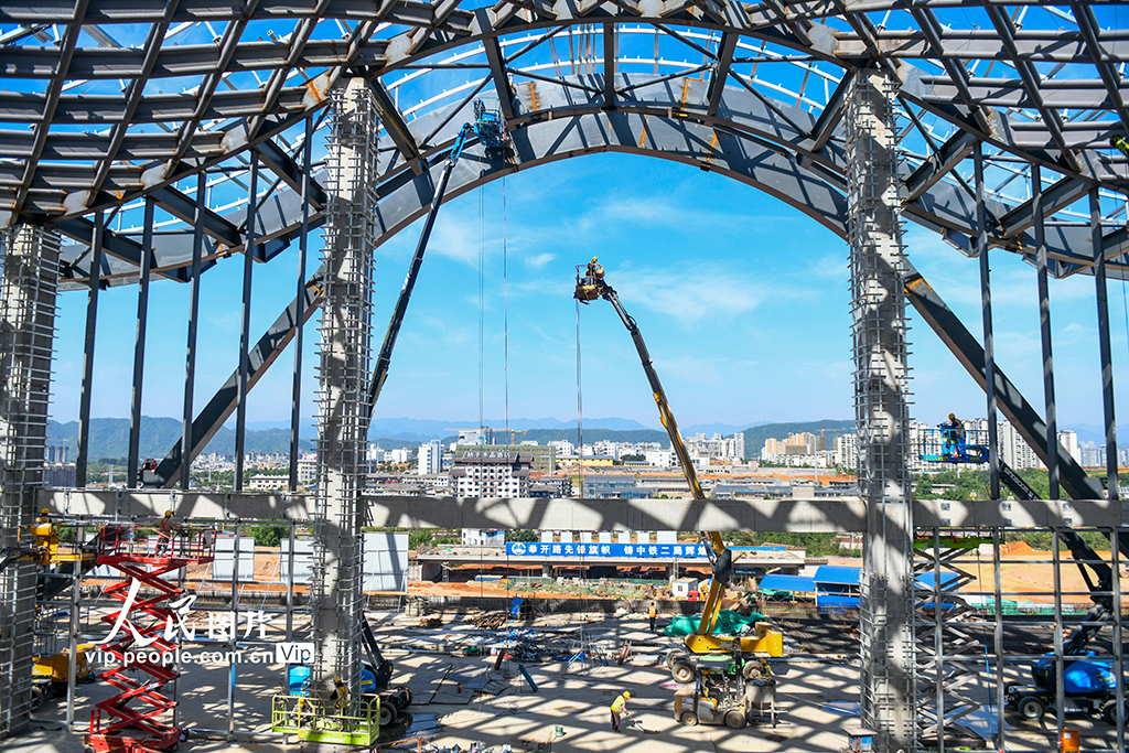 目前,贵州省盘(州)兴(义)铁路兴义南站已进入墙面石材铺装、玻璃幕墙安装及吊顶装饰等精细化施工阶段。 作为贵州省实现