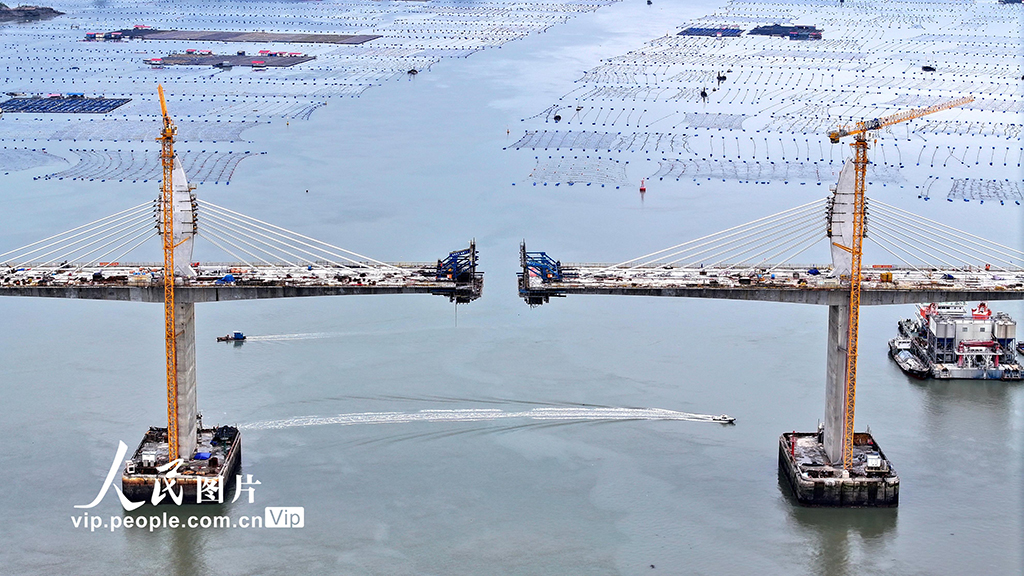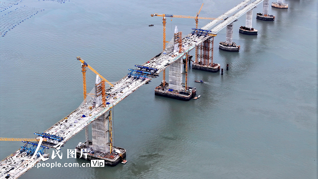 2025年5月29日,福建省宁德市霞浦县境内的宁上高速公路东吾洋特大桥施工现场一派繁忙。据了解,东吾洋特大桥是宁上高速公路的重要控制性工程,全长2546.6米,这座跨海大桥在财税政策支持下加速推进,目前,东吾洋特大桥桩基已全部完成(最大桩长144米),承台、墩柱、盖梁等工程均按序时进度推进,悬浇节段箱梁累计完成63节段,占比82%;斜拉桥3座主塔已全部完成,斜拉索施工累计完成81%。王旺旺摄(人民图片网)