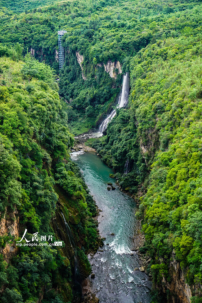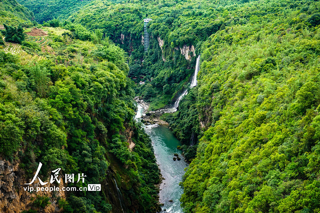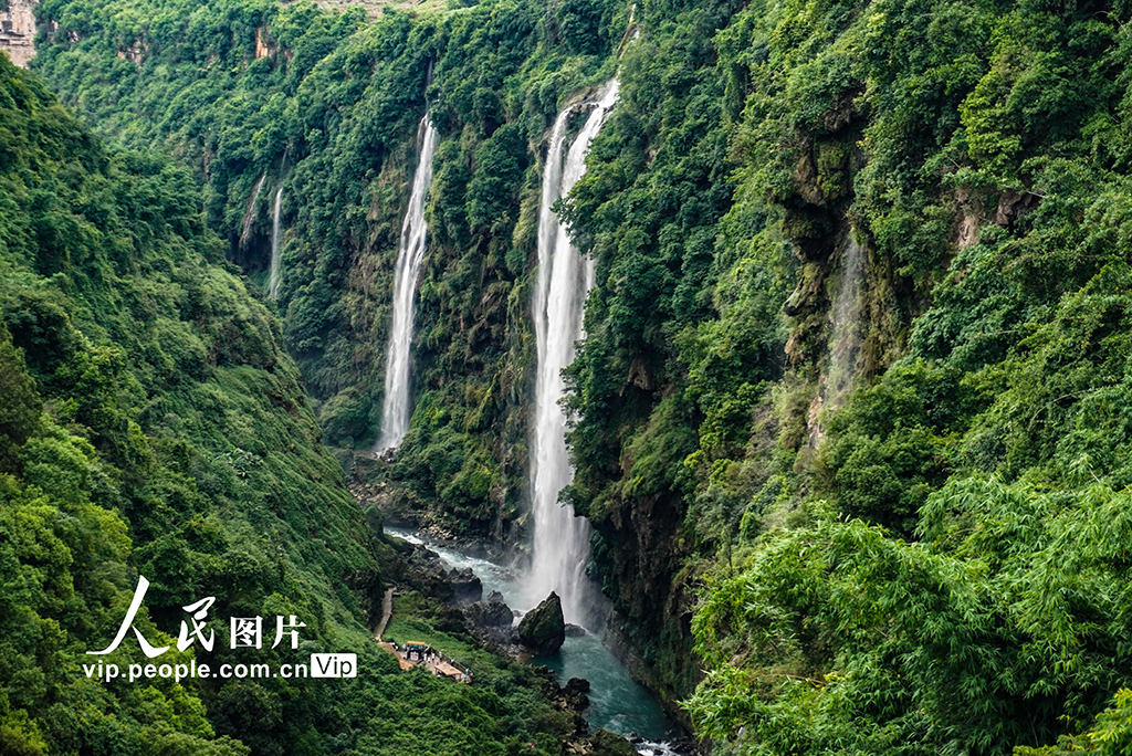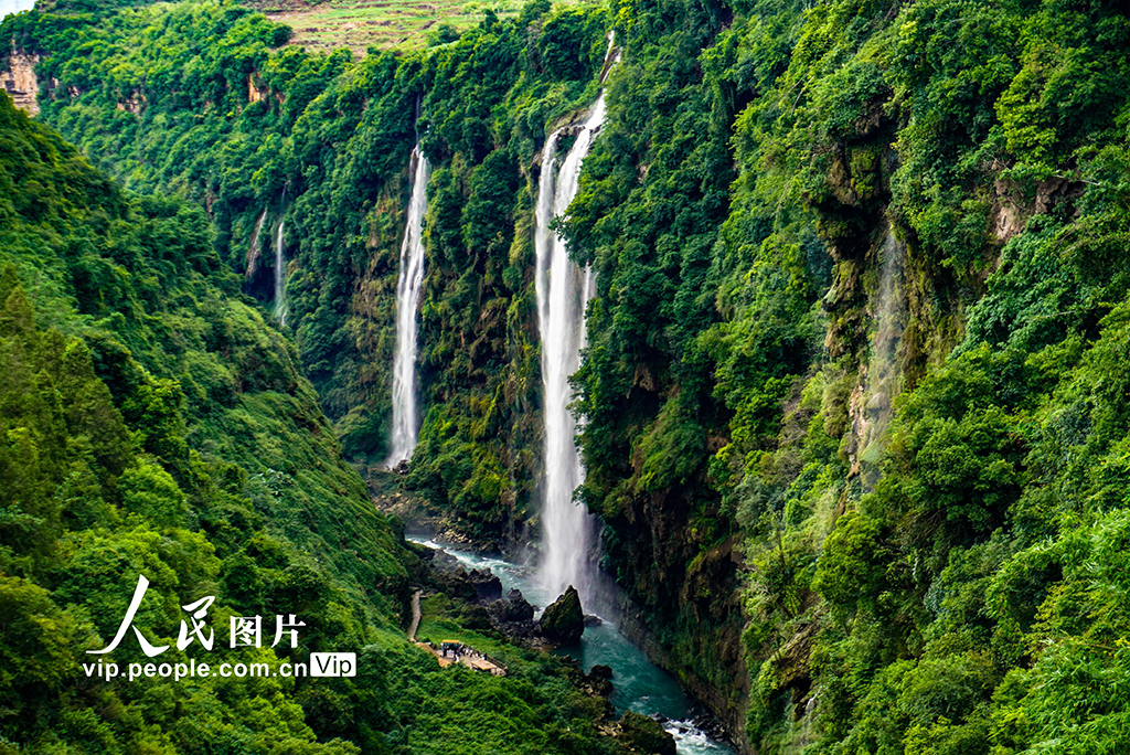 近日,贵州省黔西南州兴义市马岭河峡谷瀑布进入丰水期,瀑布与绿意正浓的山峦相映成景。李允凤摄(人民图片网)