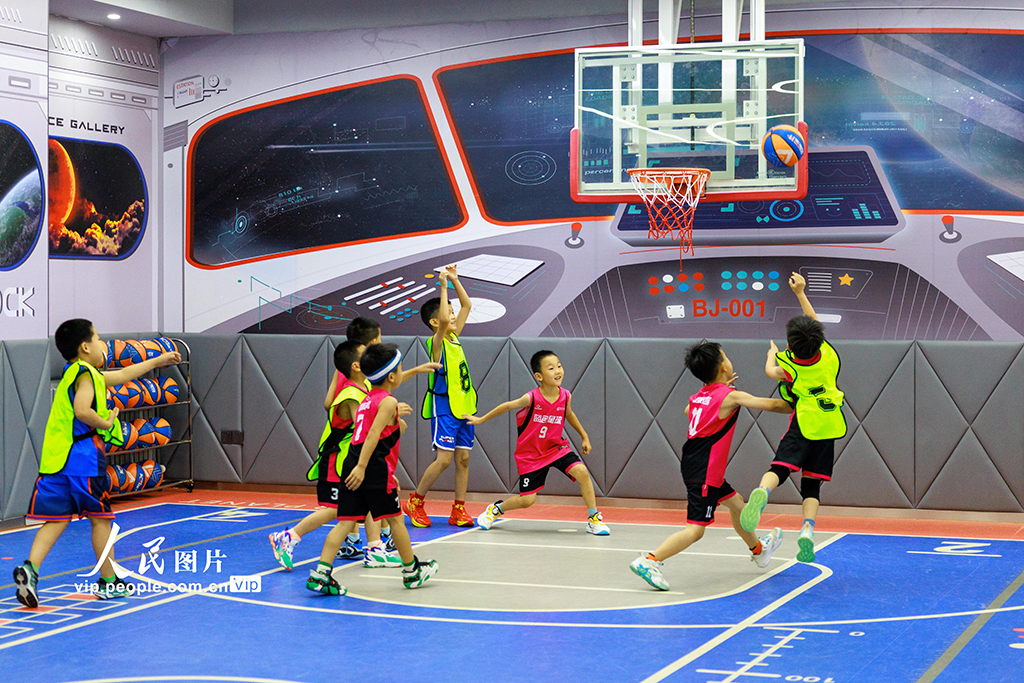 2025年7月8日,新疆乌鲁木齐经济技术开发区(头屯河区)高铁街道锦霞社区组织辖区小朋友开展唱歌、绘画、舞蹈、篮球等活动,丰富他们的暑期生活。孙振嵩摄(人民图片网)