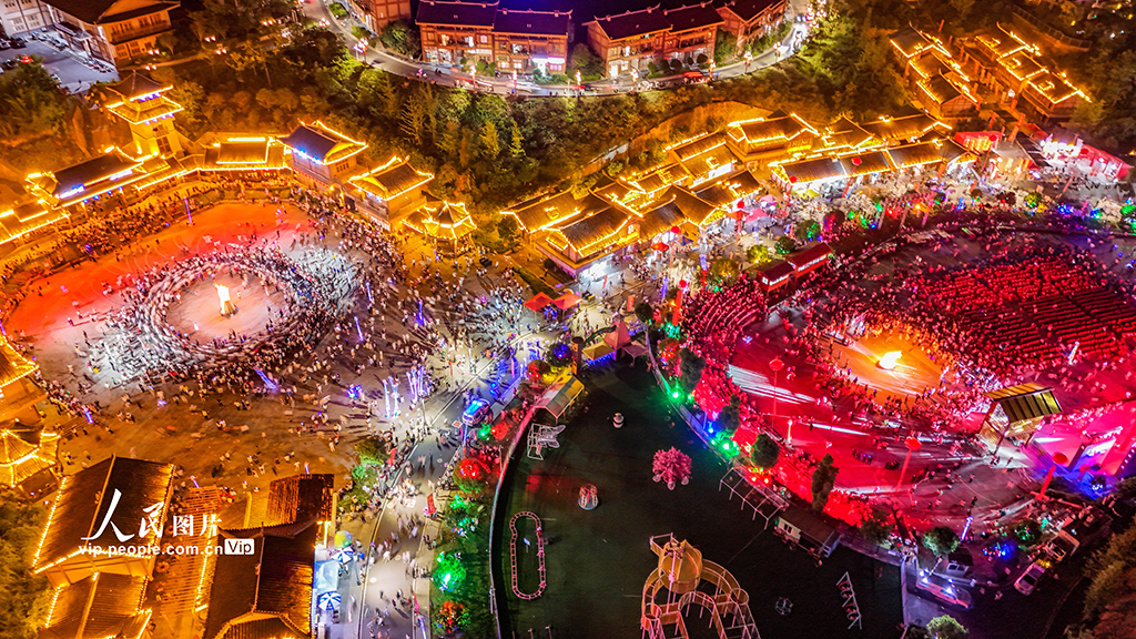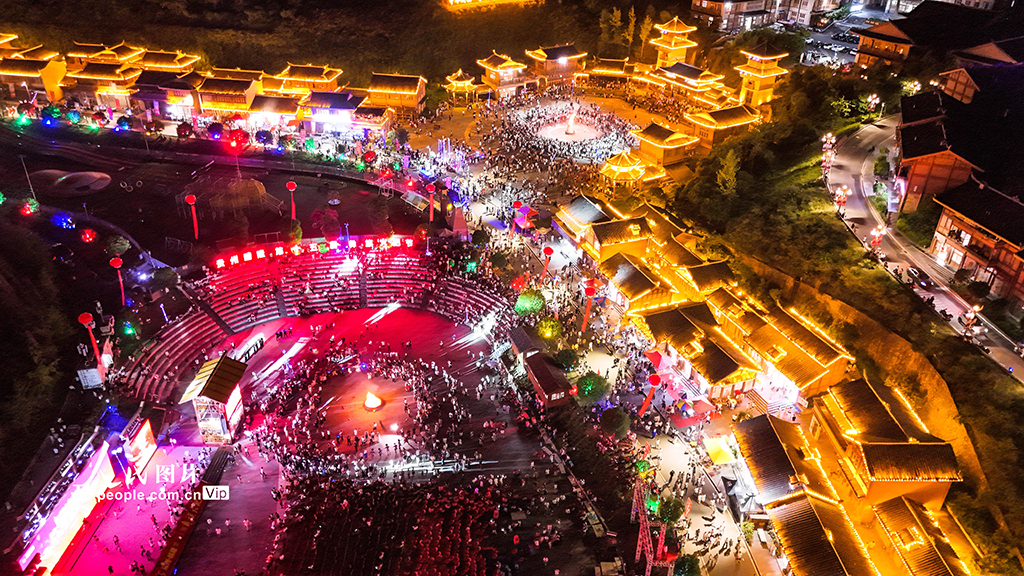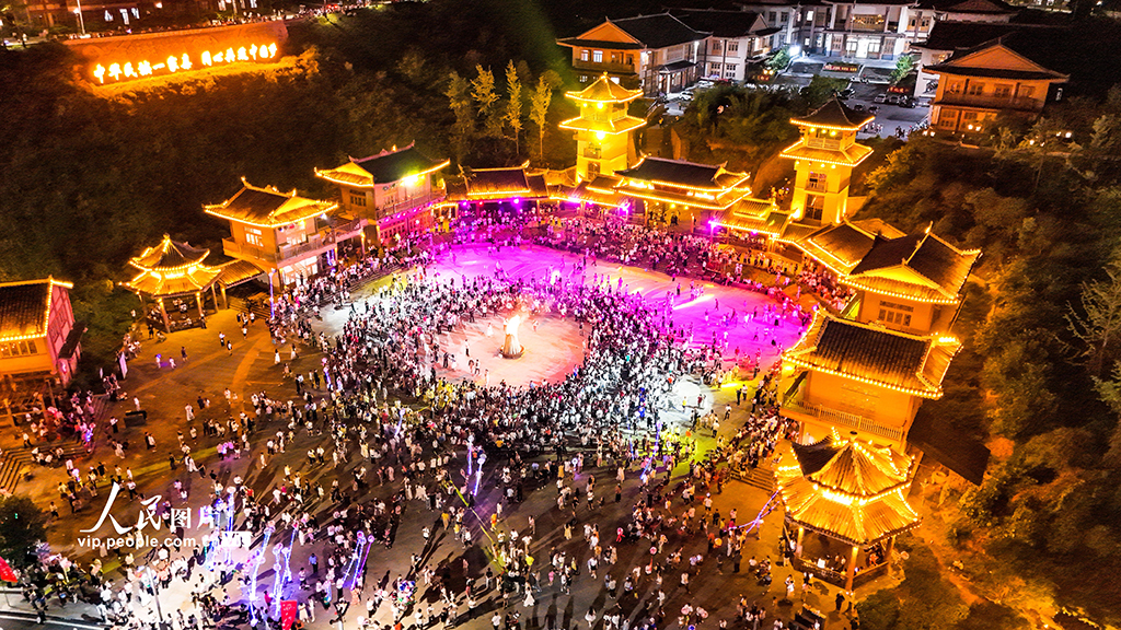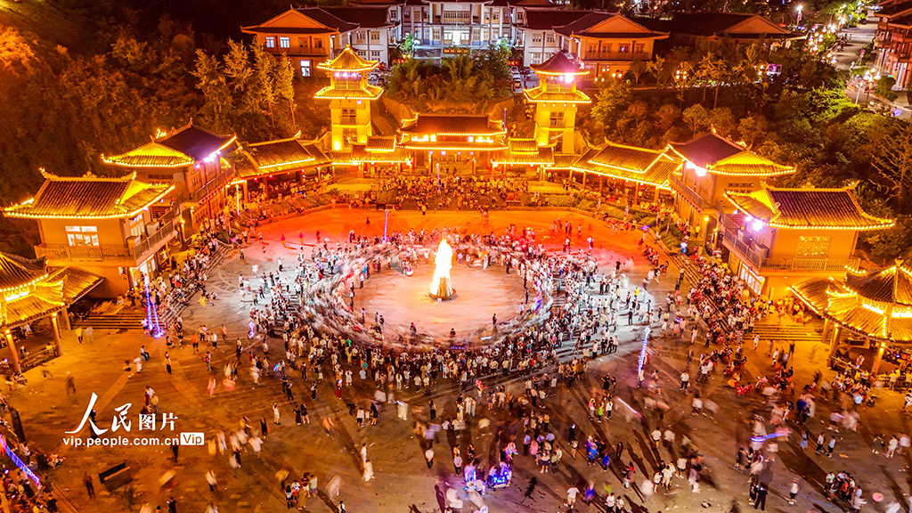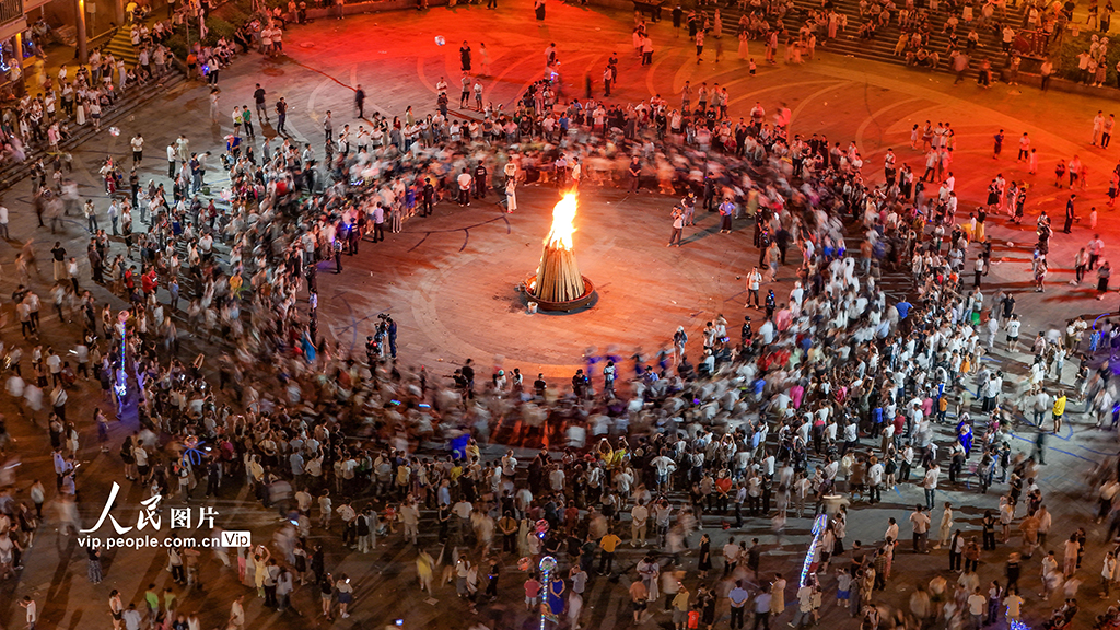 7月18日,2025年贵州·晴隆第十五届彝族火把节系列活动在贵州省黔西南州晴隆县举行,吸引了来自全国各地游客和彝族同胞参加篝火狂欢活动。李允凤摄(人民图片网)