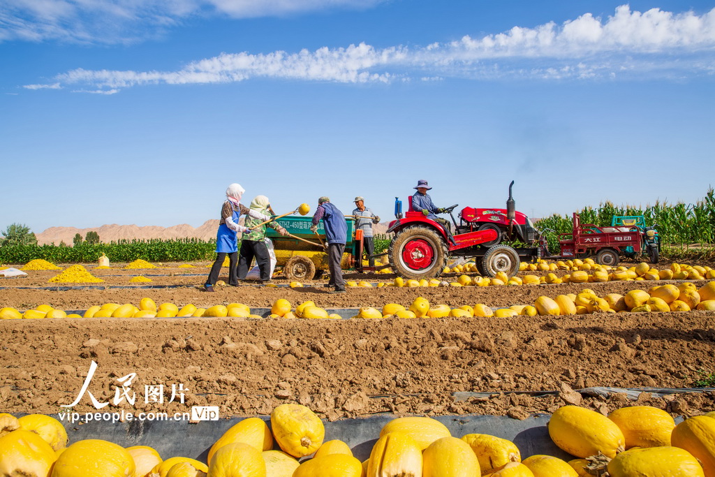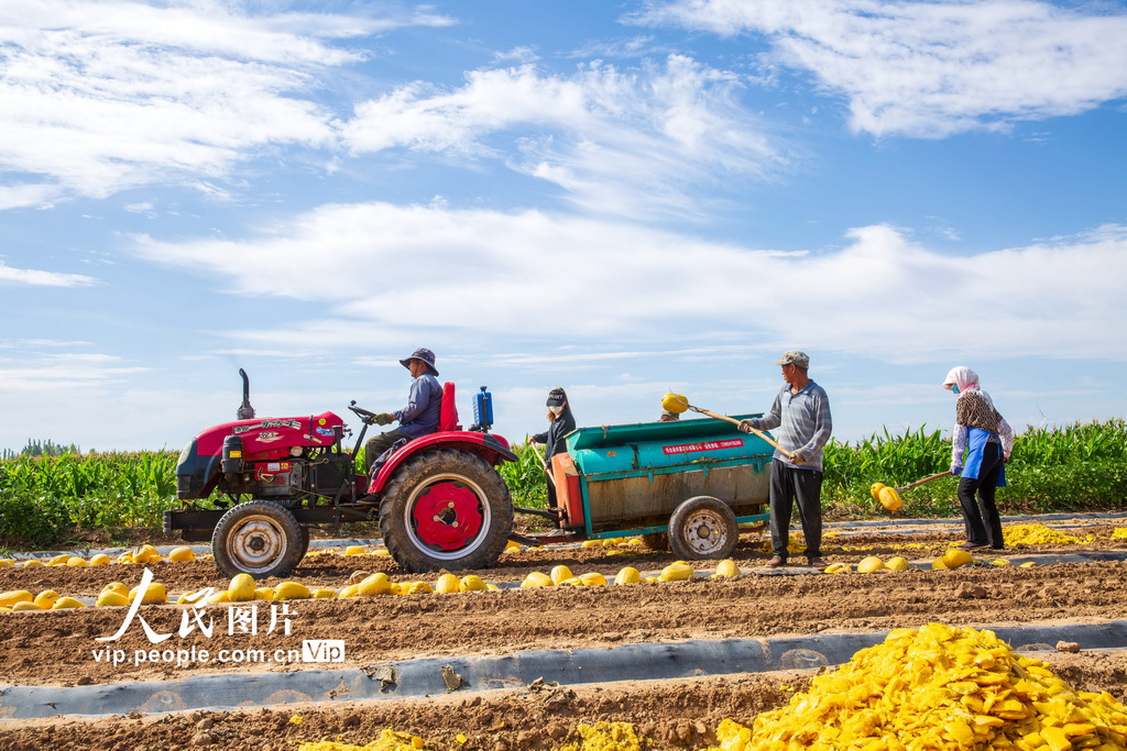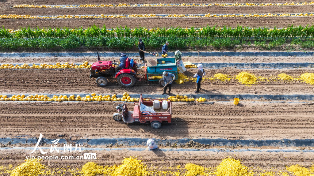 8月9日,甘肃省张掖市高台县罗城镇天城村,制种葫芦喜丰收,村民抢抓晴好天气进行制种葫芦加工取籽作业。 近年来,当地因地制宜调整农业产业结构,结合市场需求,通过“公司+合作社+农户”的模式,积极引导农民种植制种葫芦、丝瓜、西瓜等特色农产品,提高土地综合效益,拓宽农民增收渠道,助力农民增收致富。杨潇摄(人民图片网)