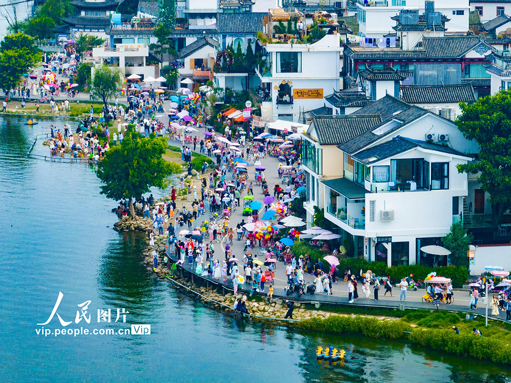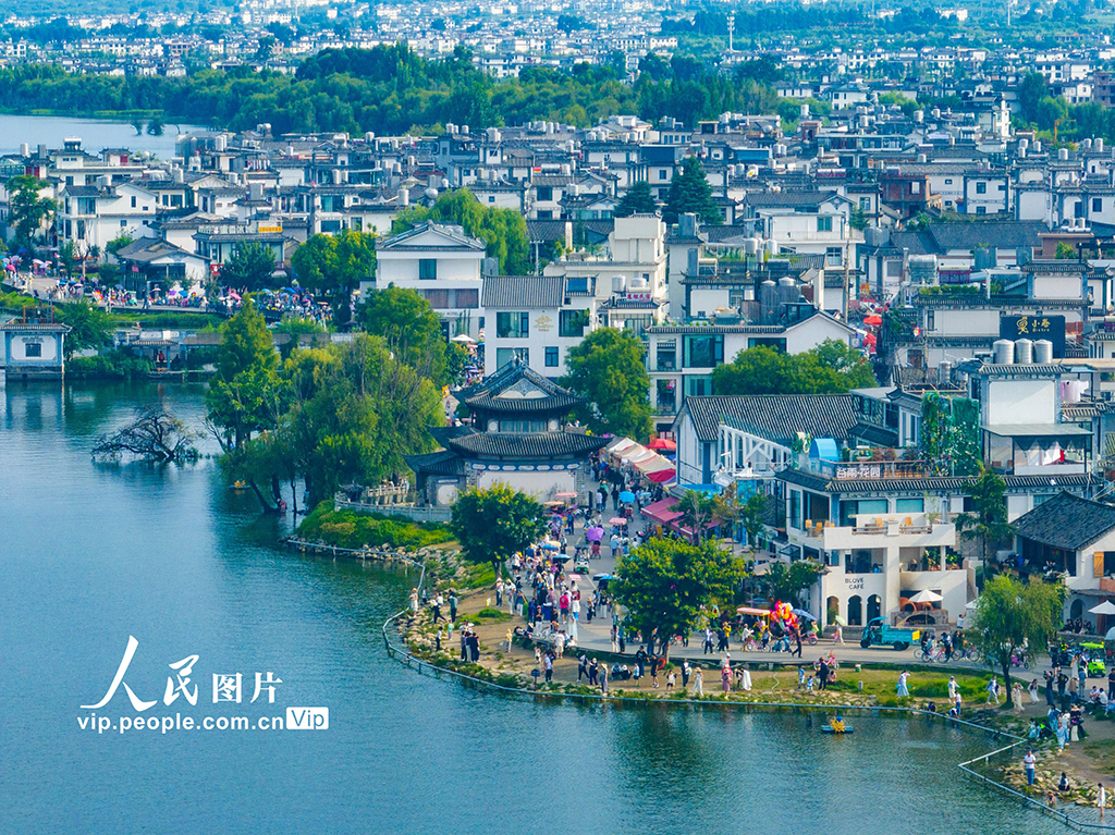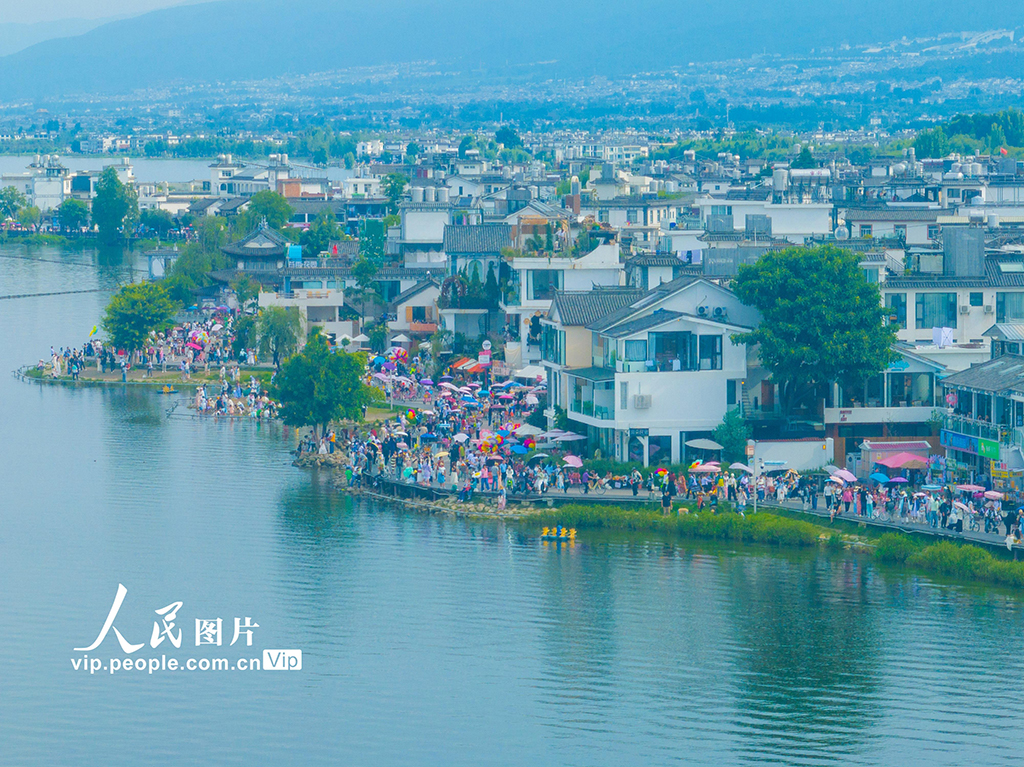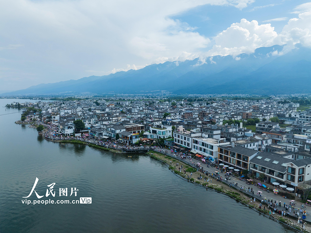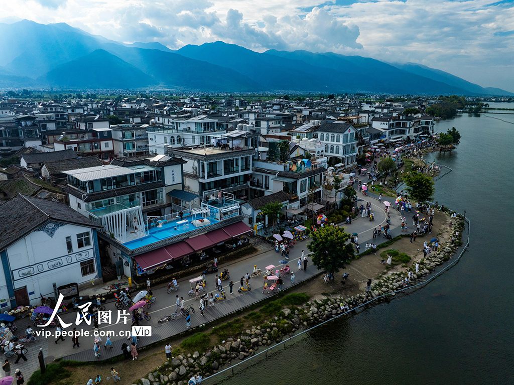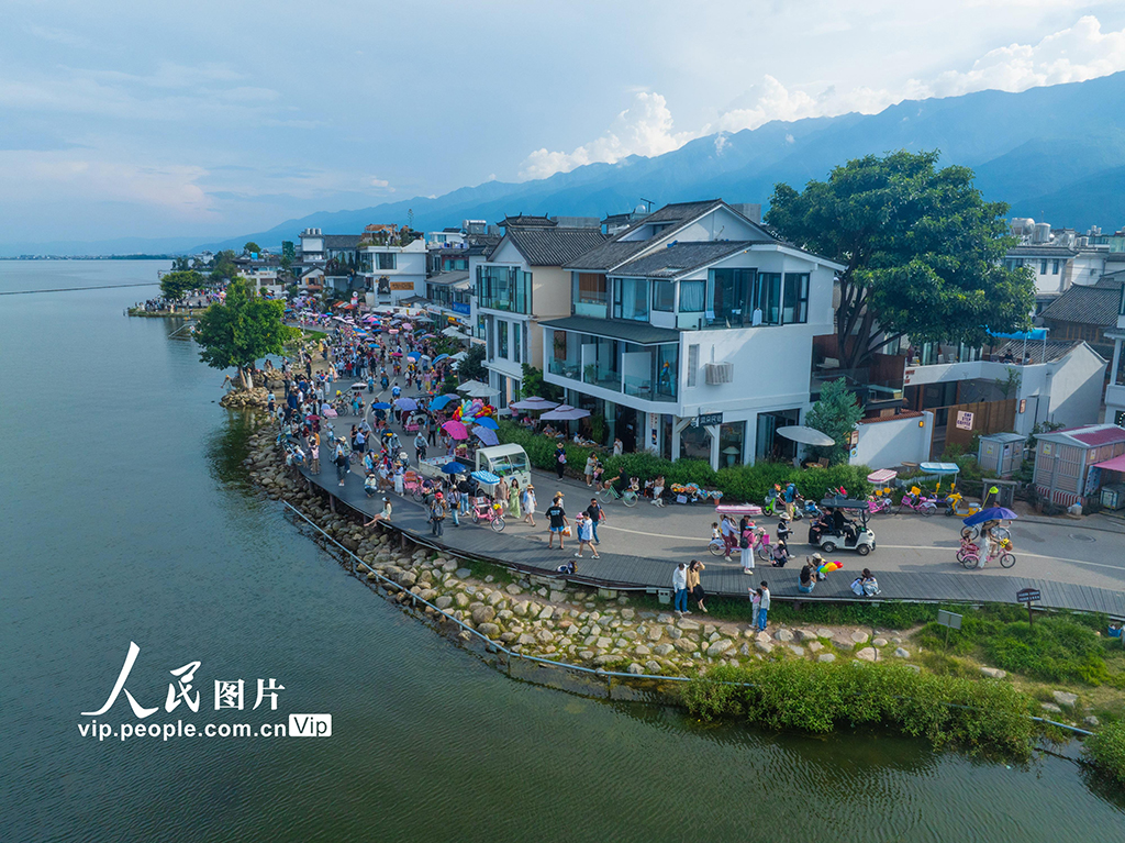 暑假期间,云南大理白族自治州洱海生态廊道游人如织。刘峥摄(人民图片网)