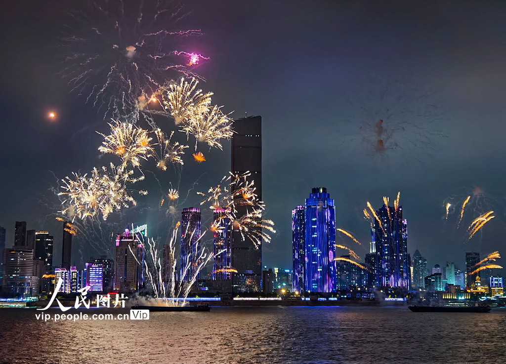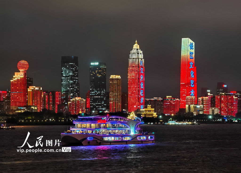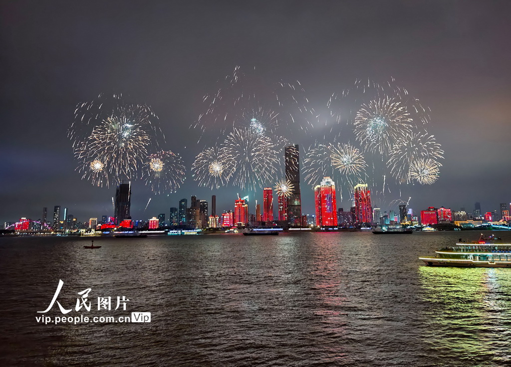 2025年9月12日晚,2025长江文化艺术季开幕式在汉口江滩三阳广场举行。武汉市汉口江滩及长江水域(长江大桥至长江二桥段)举行了烟花秀、无人机光影秀等表演活动。胡吉林摄(人民图片网)