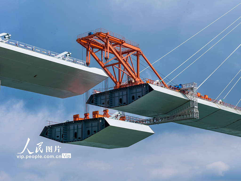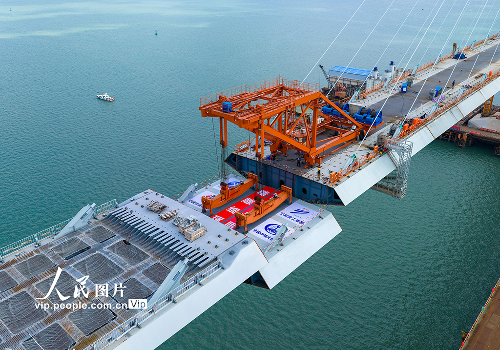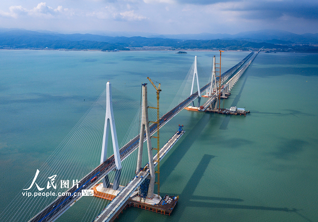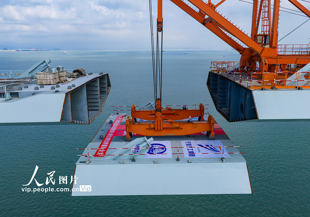 2025年10月16日,浙江省宁波市域铁路象山港跨海大桥北侧边跨顺利合龙,至此大桥南北边跨全部合龙。 大桥双侧边跨合龙,为后续主桥合龙积累了宝贵经验,也标志着项目全面转入上部结构施工新阶段。胡学军摄(人民图片网)