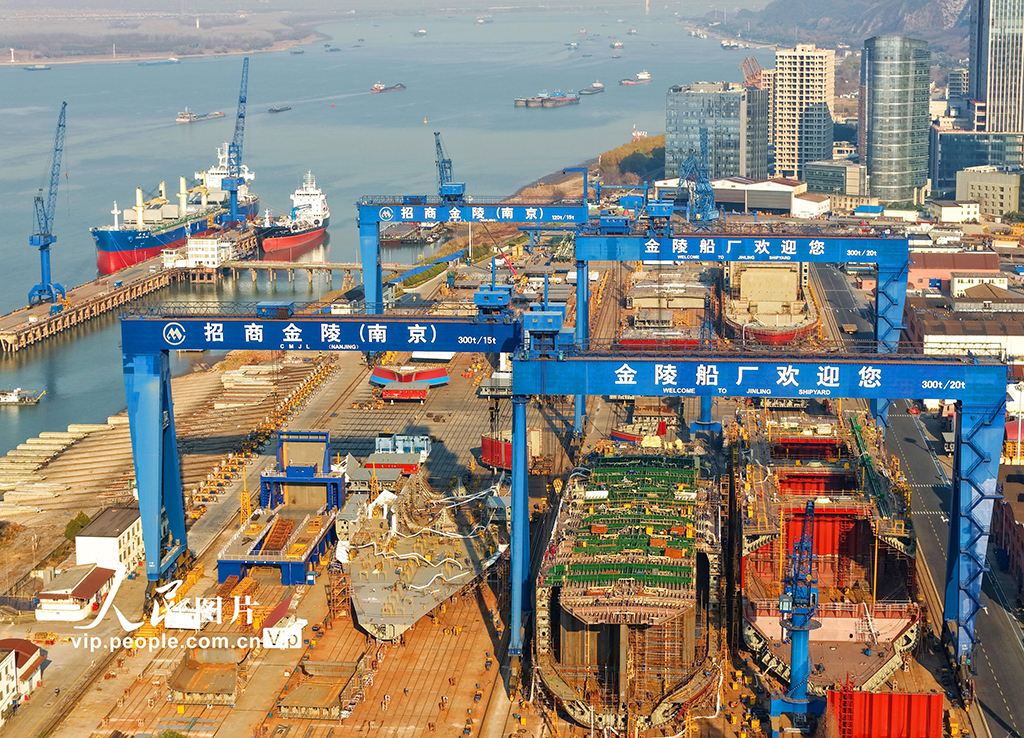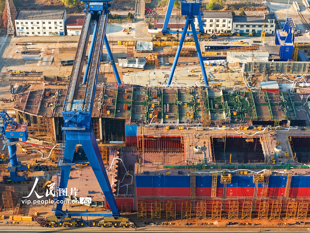 临近年末,位于江苏省南京市的招商工业南京金陵船厂开足马力赶订单,抢抓时间生产各种船舶,奋力冲刺四季度,打好全年“收官战”。方东旭摄(人民图片网)