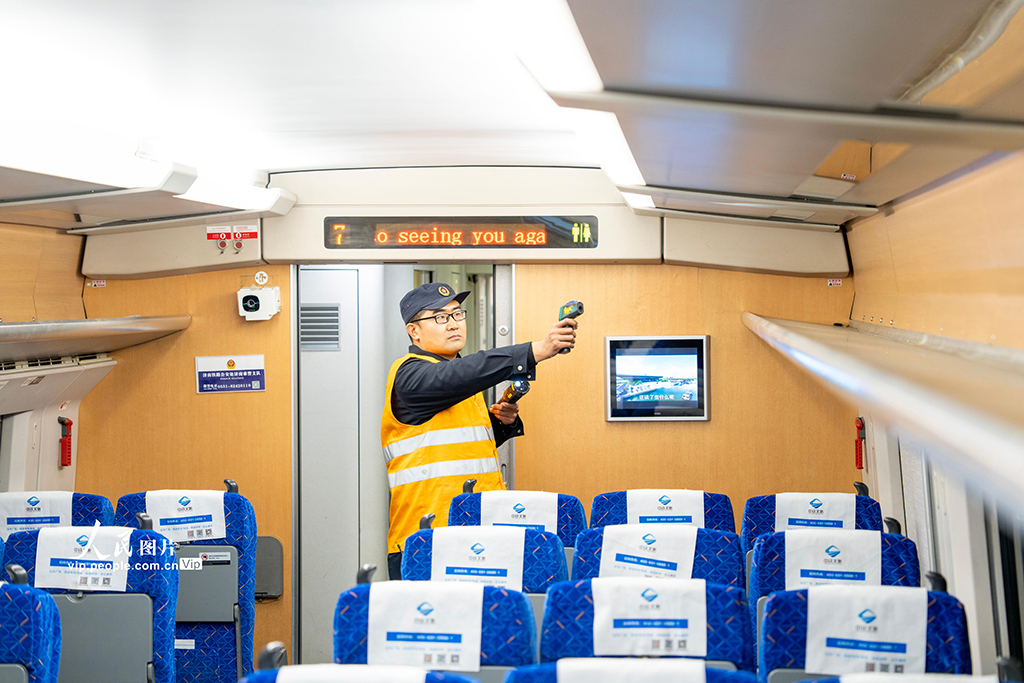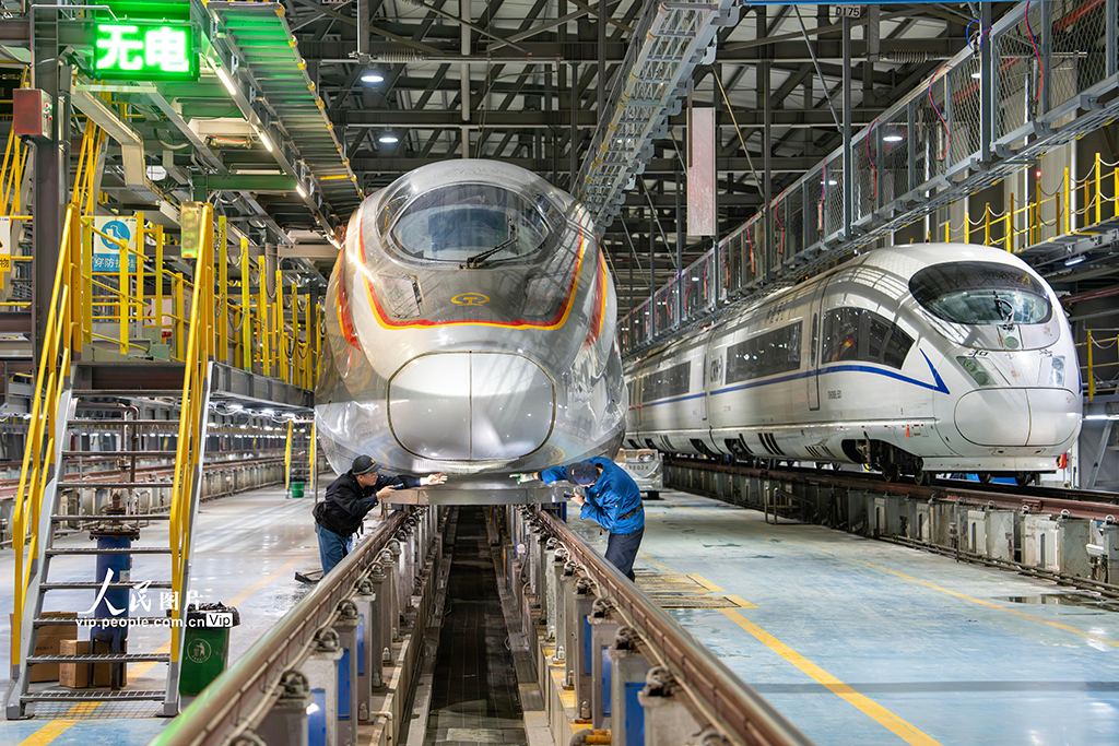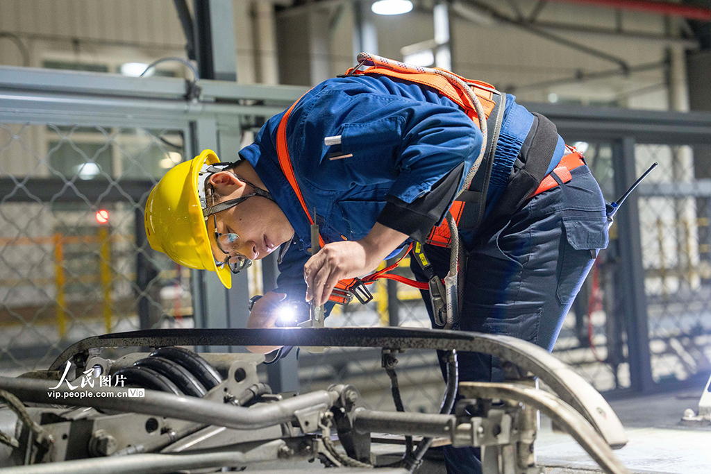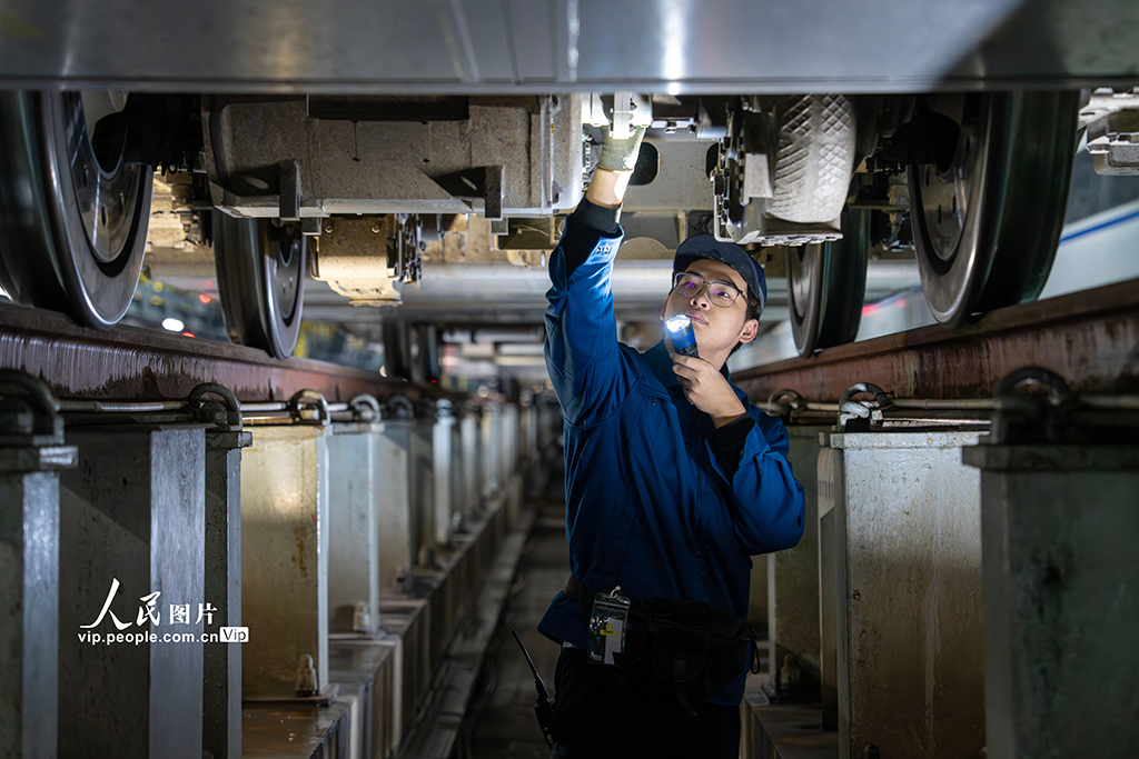 元旦假期,国铁济南局青岛动车段周密部署、精心组织,全面加强动车组检修和防寒保障工作,确保所有上线列车安全可靠,为旅客提供舒适、准点的出行服务。 针对冬季低温、雨雪等天气特点,青岛动车段重点对列车受电弓、车门、车下走行部等关键设备进行细致检查,并严格落实动车组防寒、防冻等措施。同时,动态调整检修安排,加强运行状态监测,对重点线路安排专人随车巡查,做到问题早发现、早处理。董京麟摄(人民图片网)