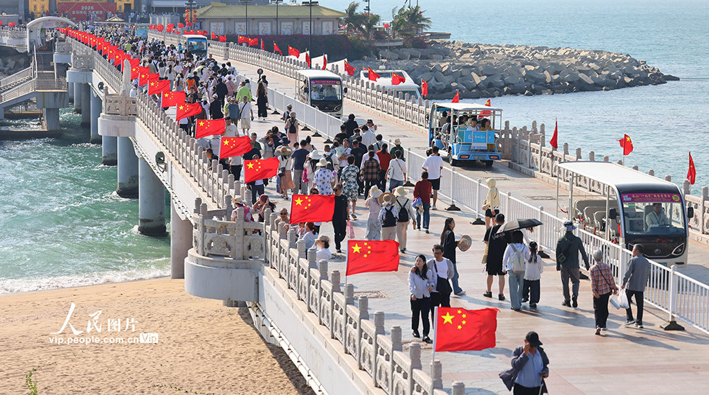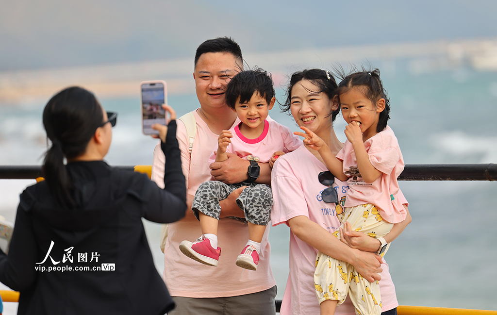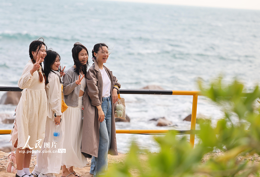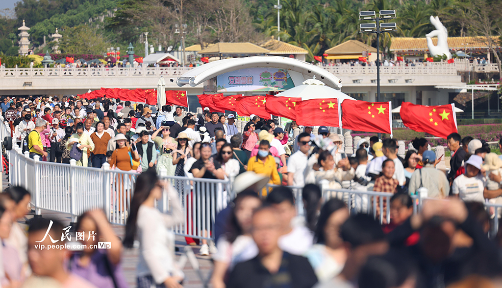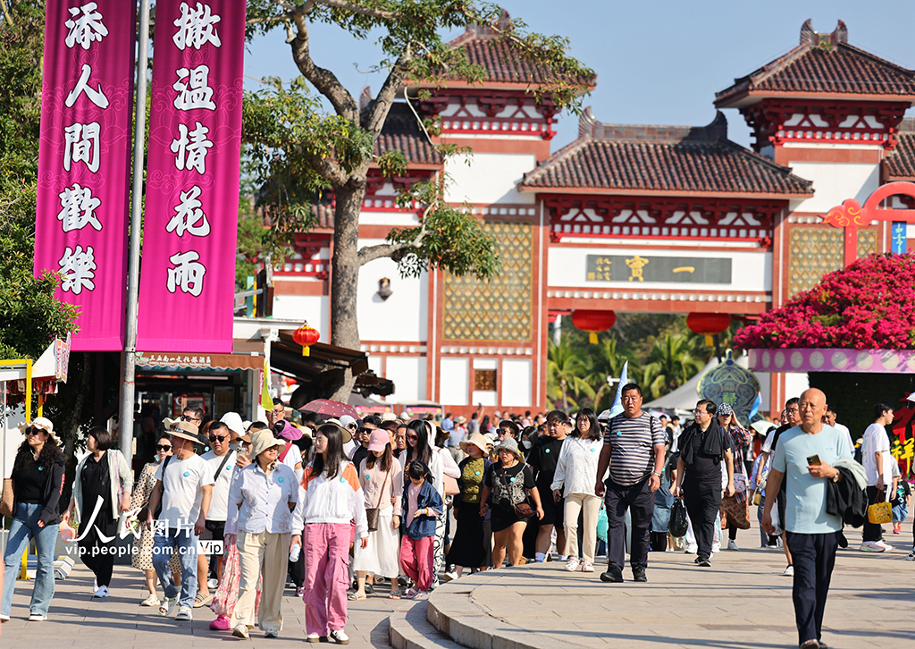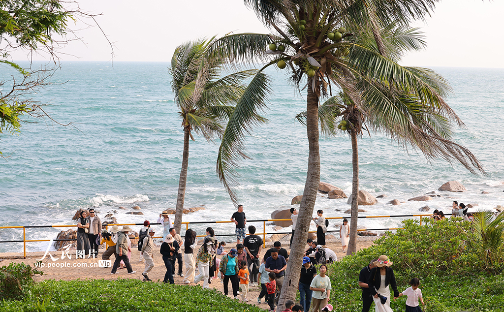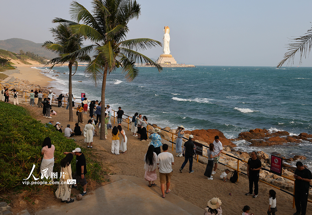 2026年1月2日,海南三亚南山文化旅游区海边,家长带着孩子在此游览。元旦假期,人们走出家门,亲近自然,享受假日时光。陈文武摄(人民图片网)