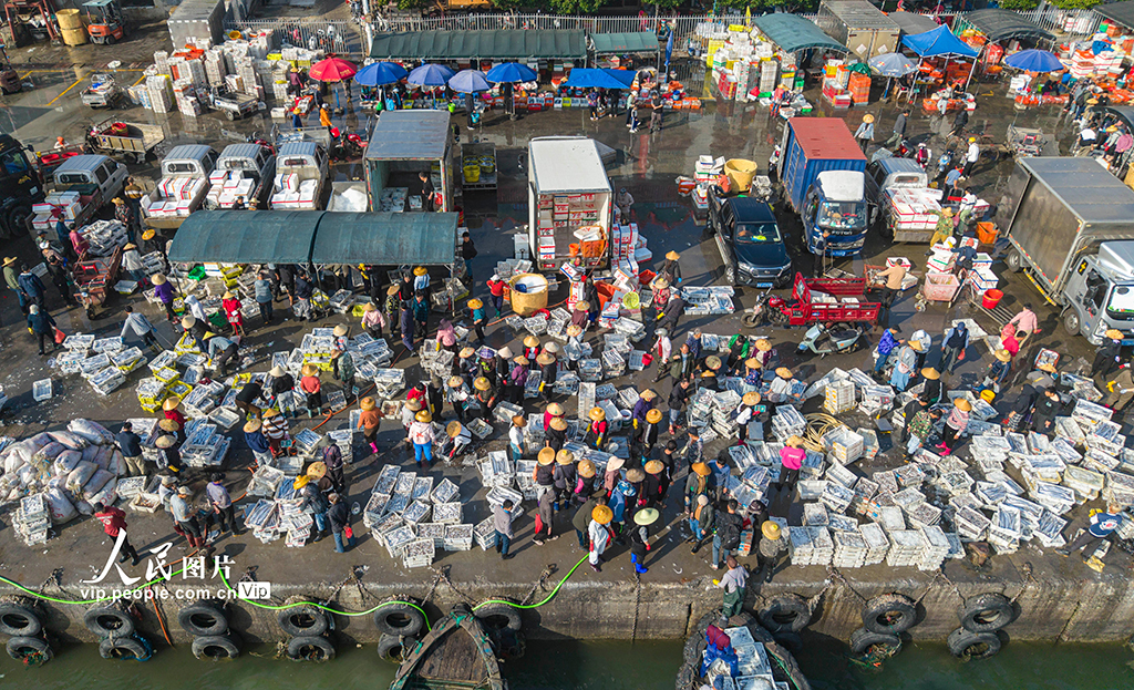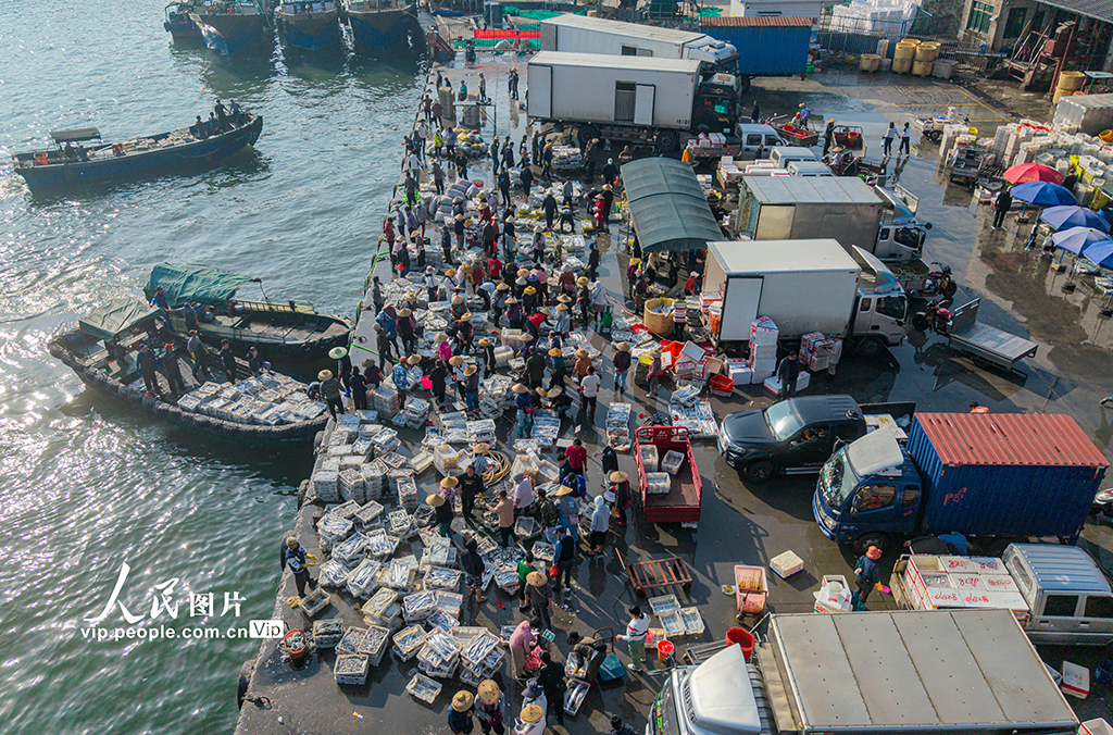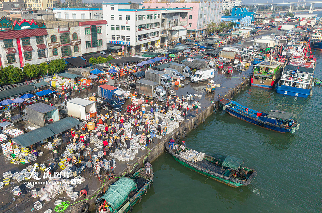 海南文昌:开年迎丰收 码头渔市旺