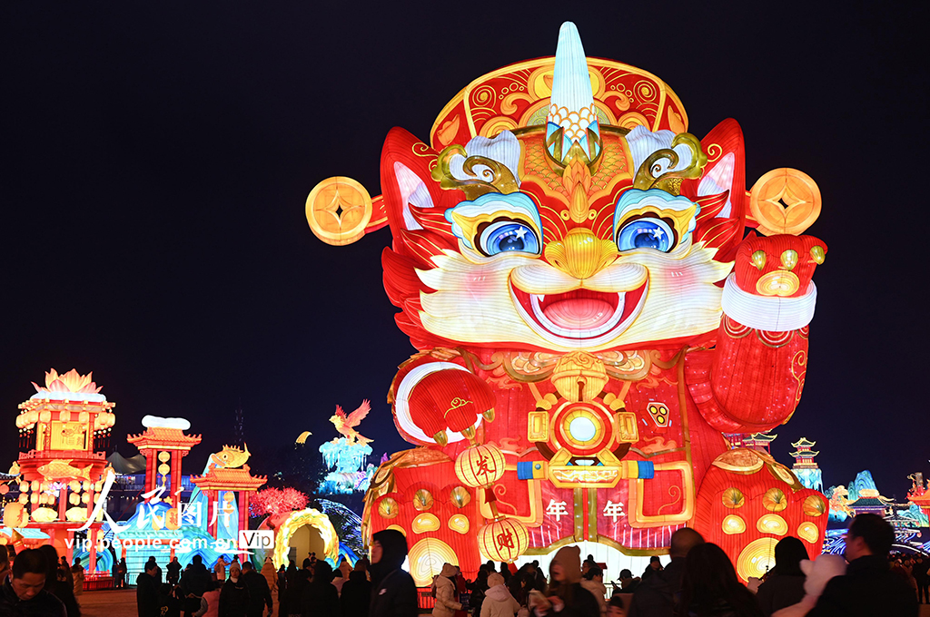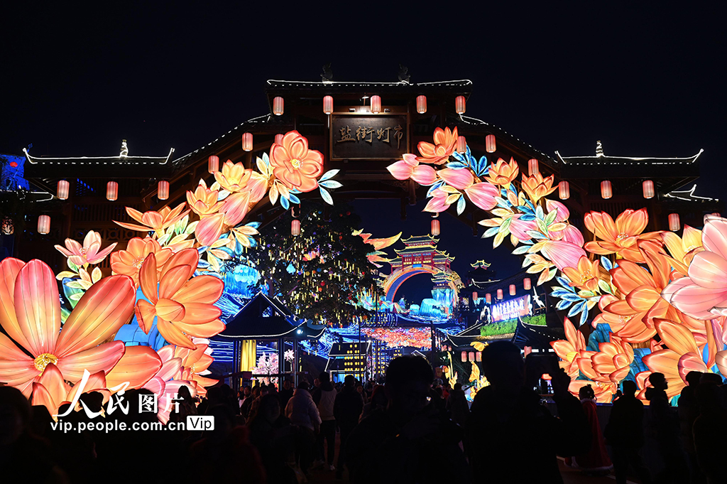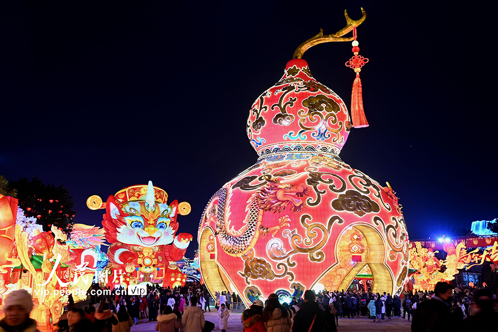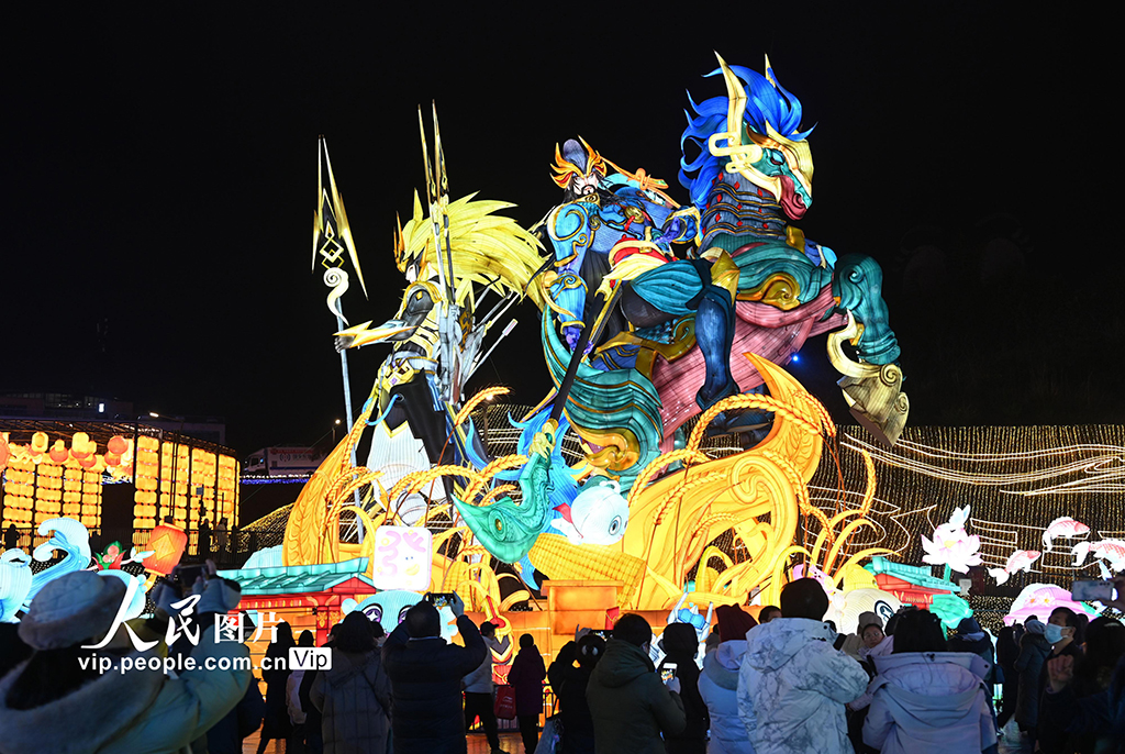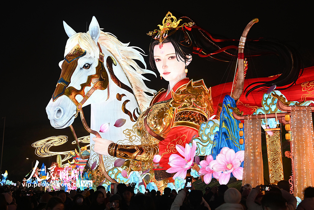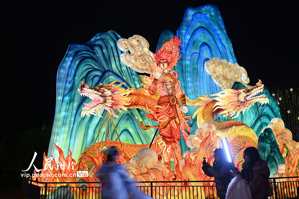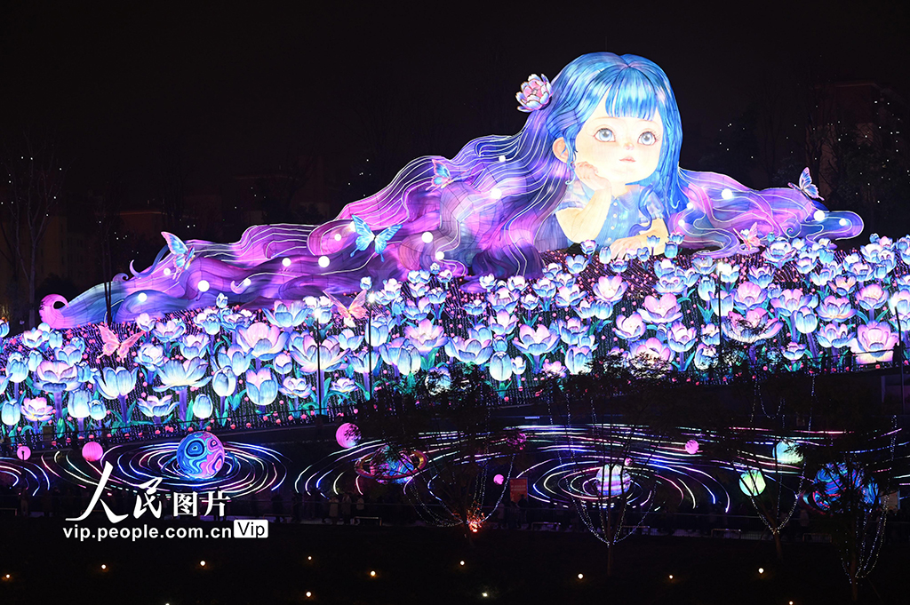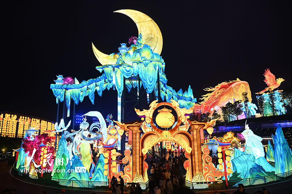 2026年1月21日晚,第三十二届自贡国际恐龙灯会在四川自贡中华彩灯大世界启动预展。 本届灯会以“灯绘华夏 筑梦未来”为主题,设置“中国结大道”“福禄广场”“木兰传奇”“匠心非遗”“神奇华夏”等十大主题展区,共布设11组超大型灯组及200余组中小型非遗彩灯,构建沉浸式叙事空间,以彩灯艺术呈现中国故事。兰自涛摄(人民图片网)
