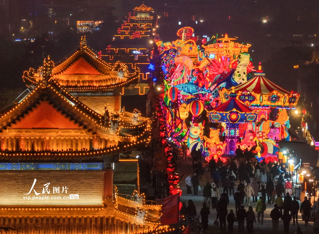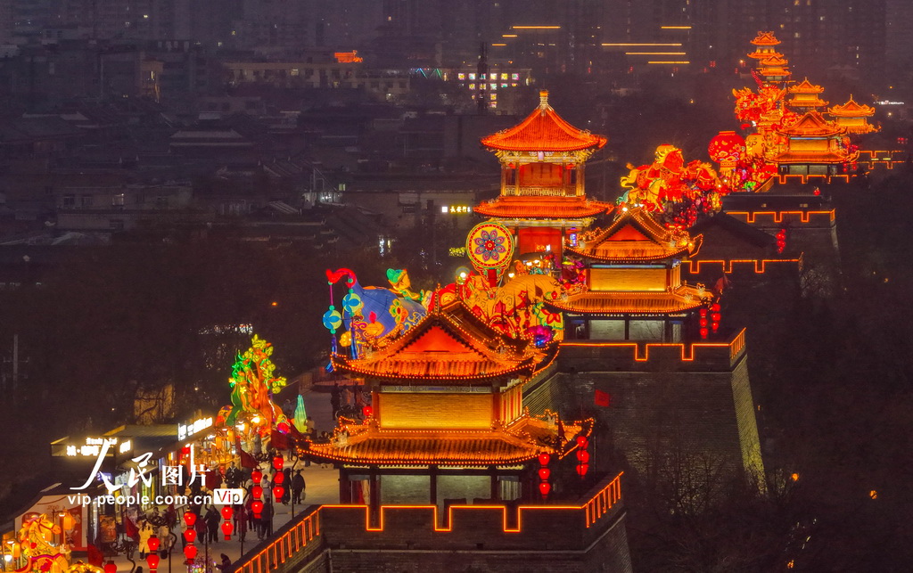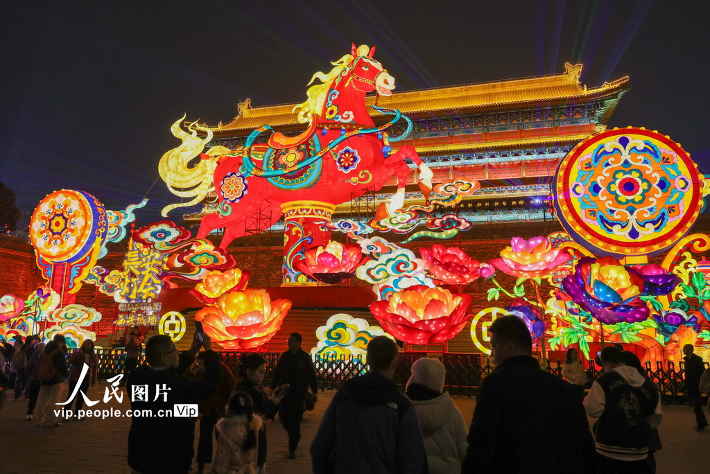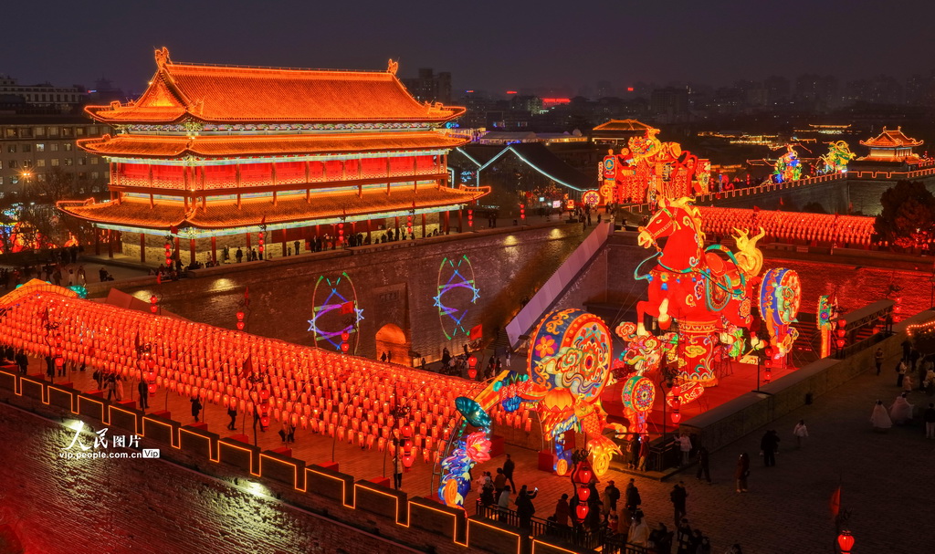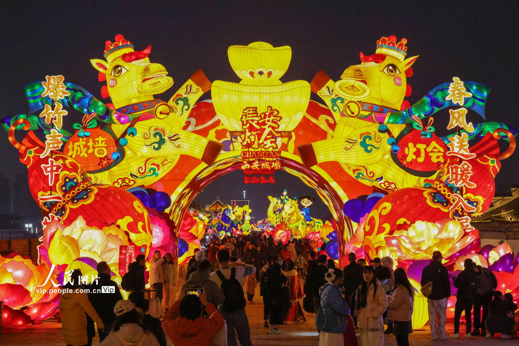 2月6日,2026“长安灯会·西安城墙”新春系列文化活动现场,游客在欣赏璀璨花灯。常奇摄(人民图片网)