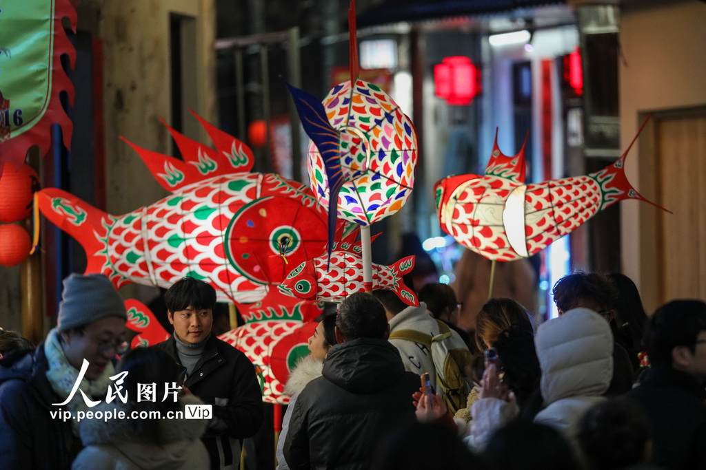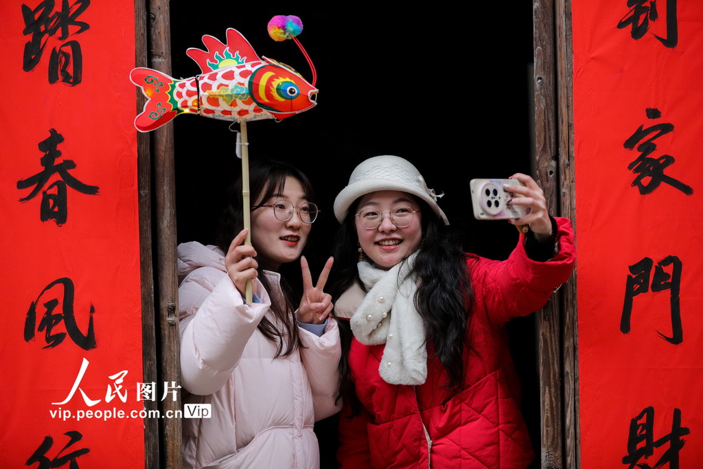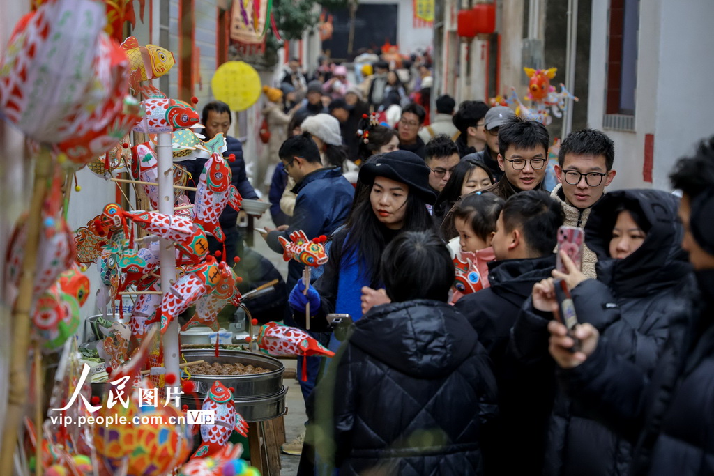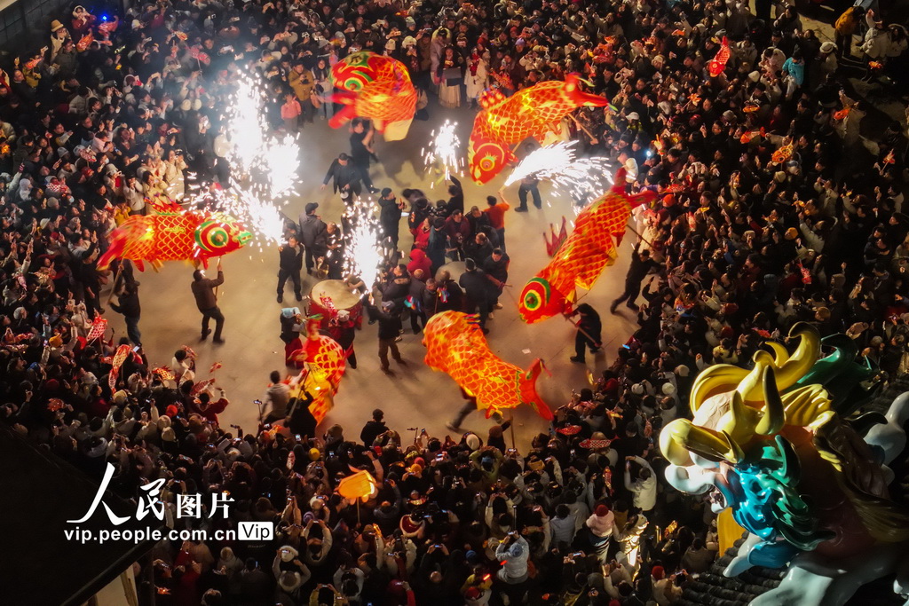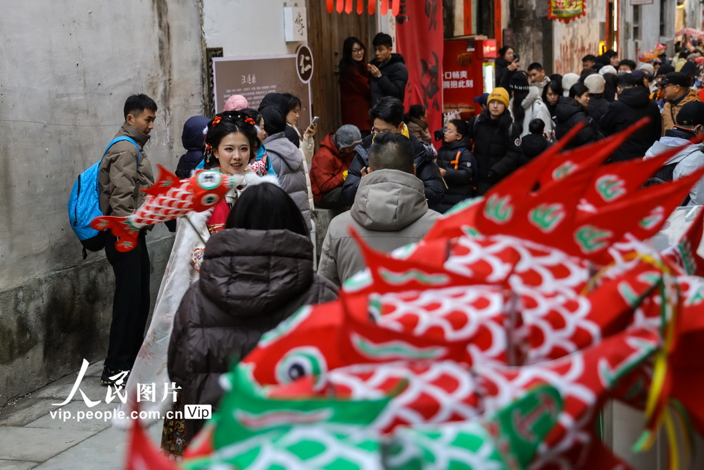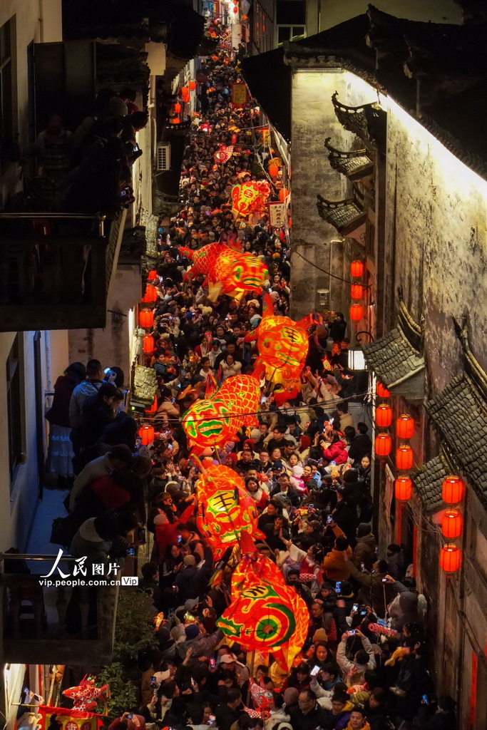2026年2月7日,安徽省黄山市歙县北岸镇瞻淇村鱼灯巡游上演,现场人声鼎沸,热闹非凡,吸引众多游客前来感受徽州年味。樊成柱摄(人民图片网)
