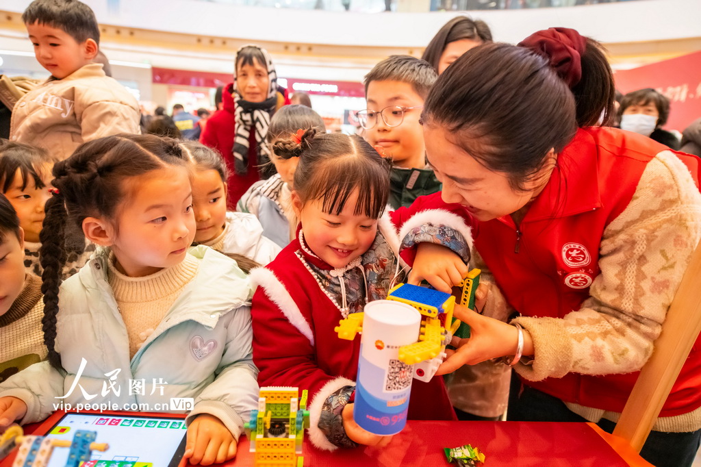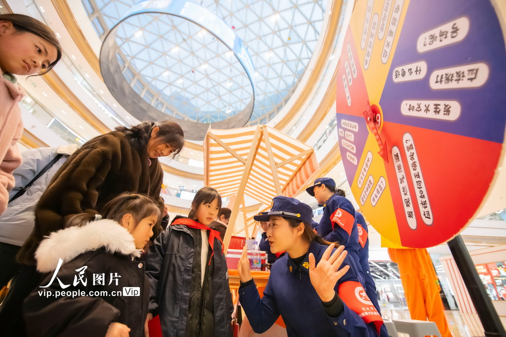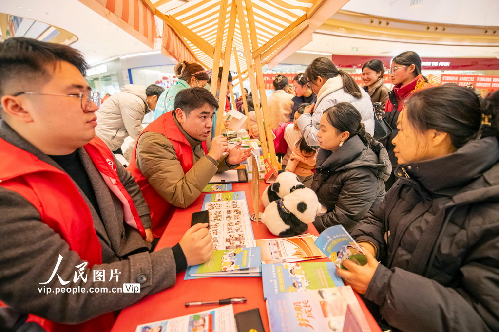 2026年3月4日,江苏省宿迁市宿城区委社会工作部组织20余家志愿服务队、80余名志愿者走进吾悦广场,开展“学雷锋 做志愿 共同奋进‘十五五’”主题活动。现场设置健康义诊、消防宣传、法治宣传、AI科普等20个便民服务摊位,“零距离”服务群众,以实际行动践行雷锋精神。徐江海摄(人民图片网)
