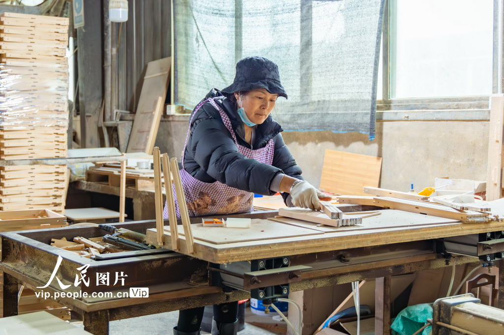 近日,在福建省南平市松溪县一竹木制品有限公司生产车间里,工人忙着生产竹制品。周燕兰摄(人民图片网)