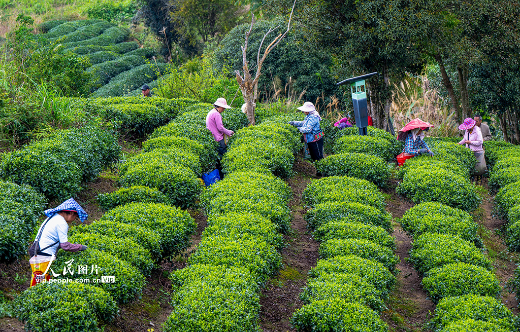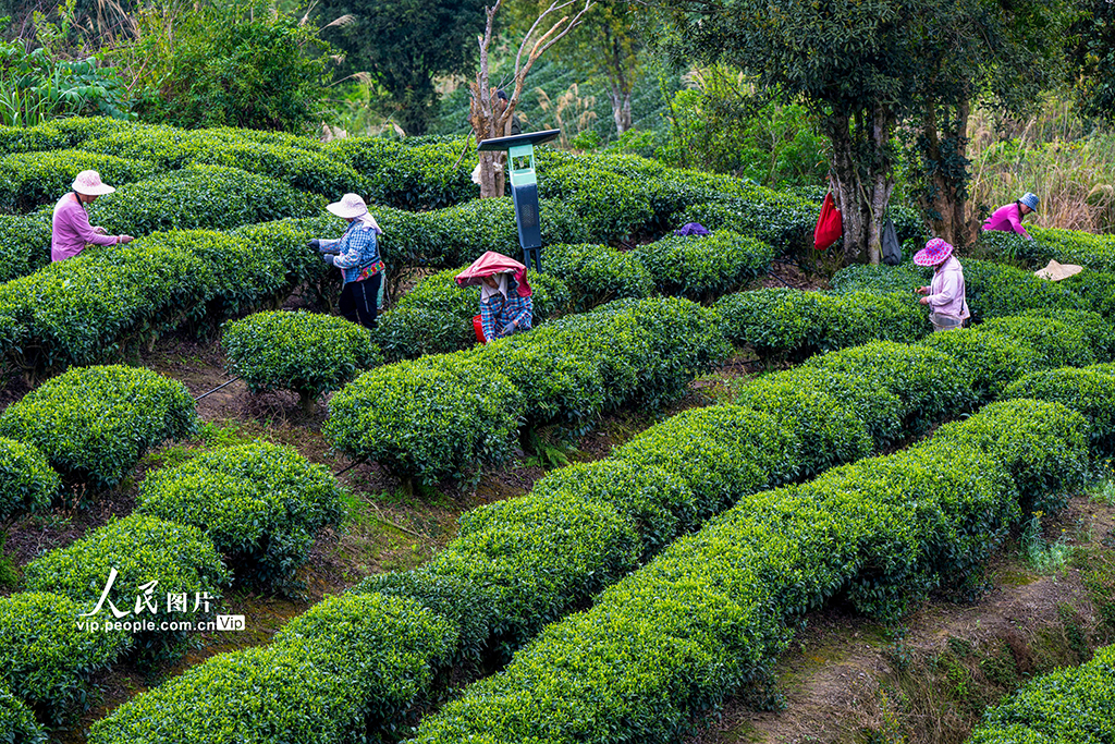 2026年3月17日,在广西贺州昭平县花六茶园,春茶开始采摘。何华文摄(人民图片网)