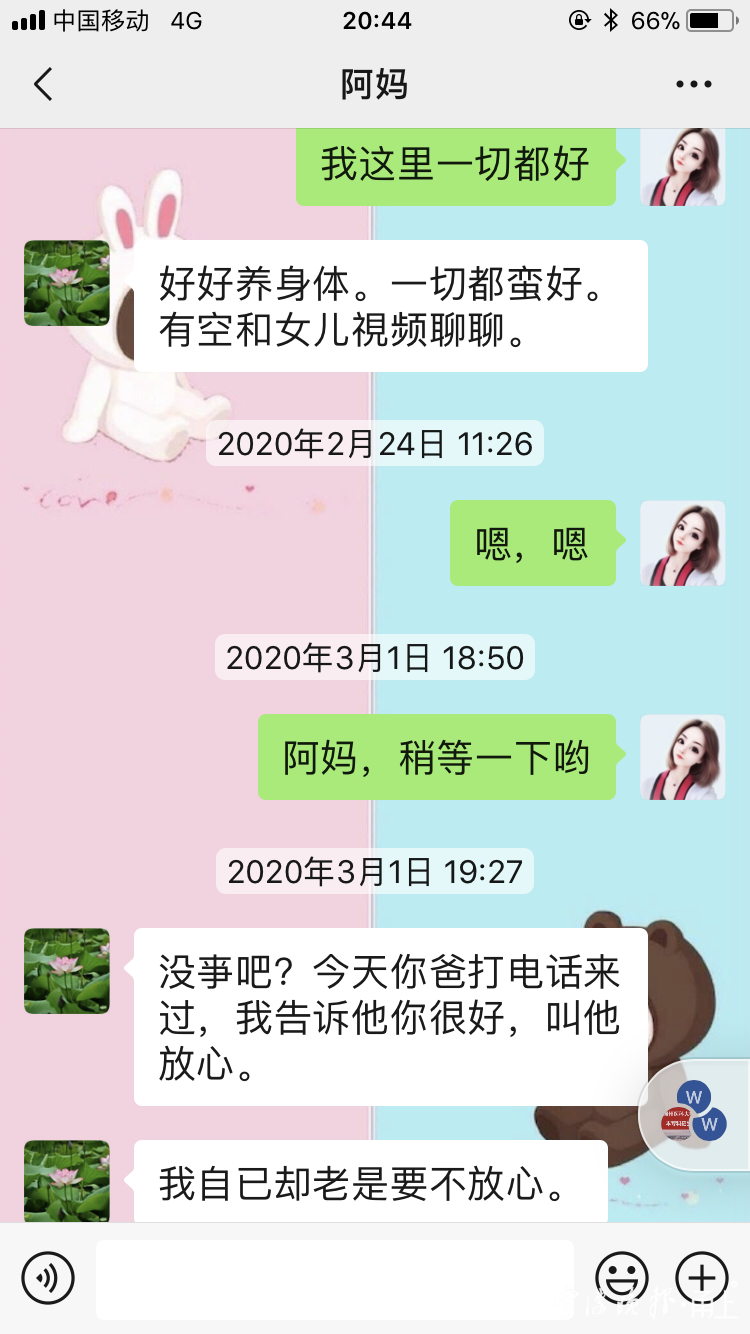 在武汉时,史偶苏和阿妈的微信聊天记录