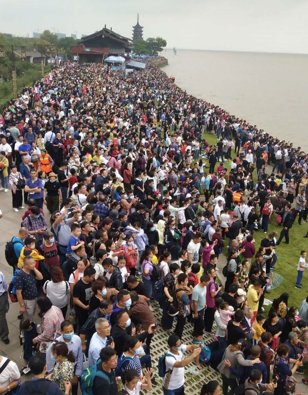 盐官观潮胜地公园已经人山人海