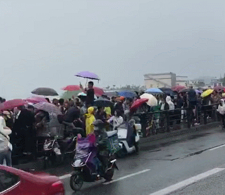 阴雨难掩人潮涌动