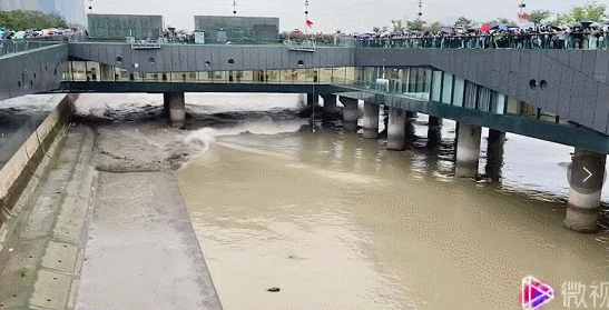 在拍打大坝后,又有一股强大的回头潮冲击北岸 ,南潮和北潮还形成了一个夹角,气势不减,和撞坝前的姿态完全不同,从一条弧线变成了十几个破碎的浪头。江面上还起了一层白雾,犹如仙境。