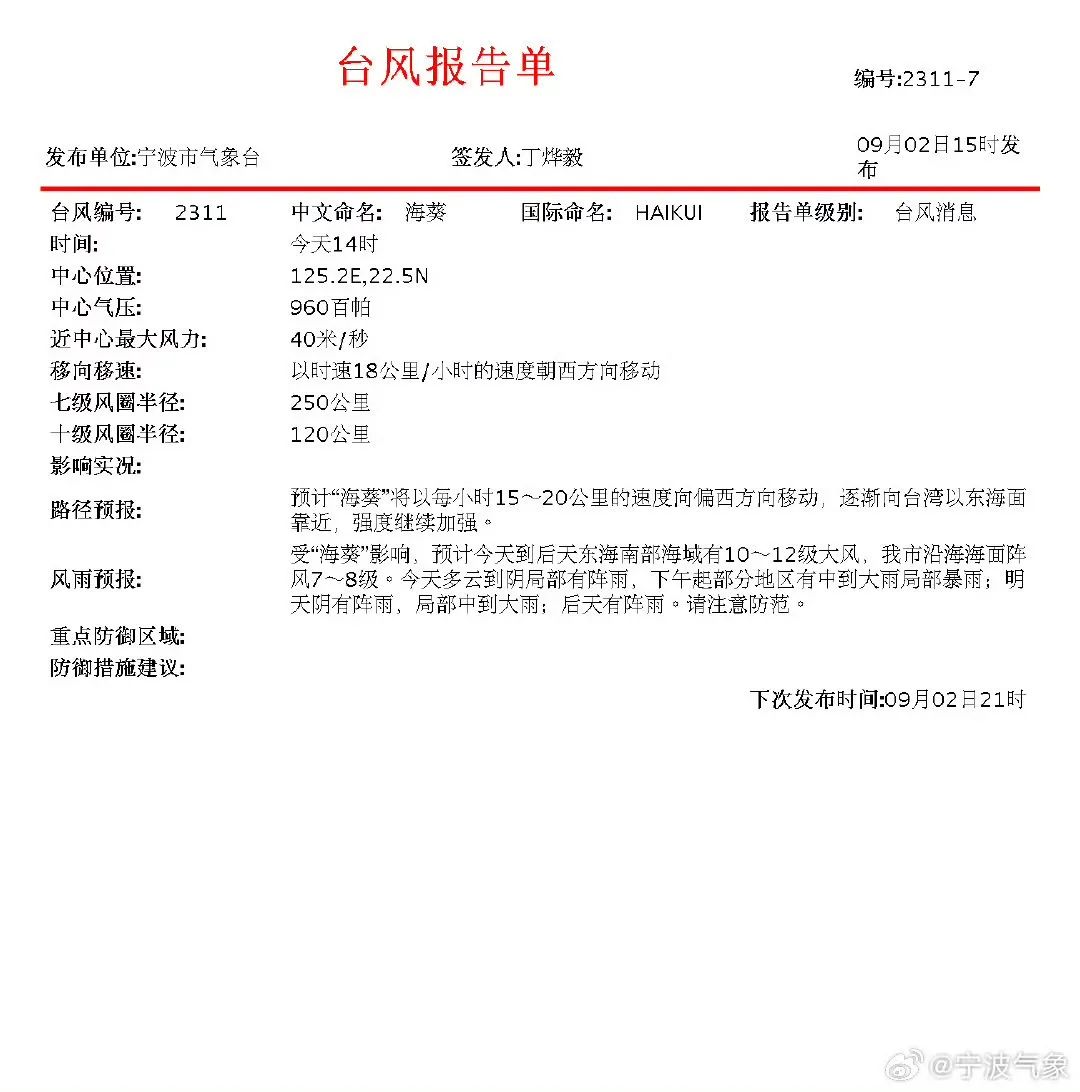 或成超强台风级!24小时警戒!“海葵”路径大变!宁波接下来……